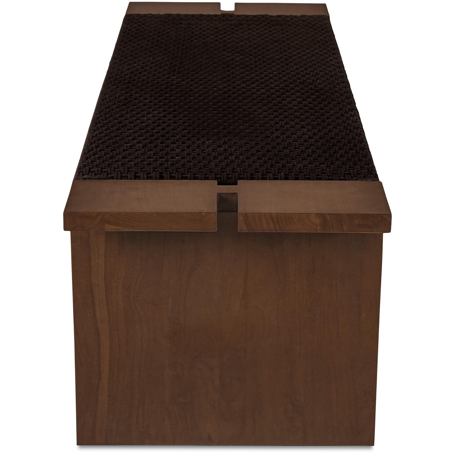 The Merritt outdoor bench blends indoor refinement with outdoor durability. This versatile bench features a solid teak frame complemented by woven, twisted synthetic hyacinth. The dark brown finish adds a touch of sophistication to any setting. Suitable for both outdoor use and as an entryway bench, it provides stylish seating and a subtle textural element to elevate any space.