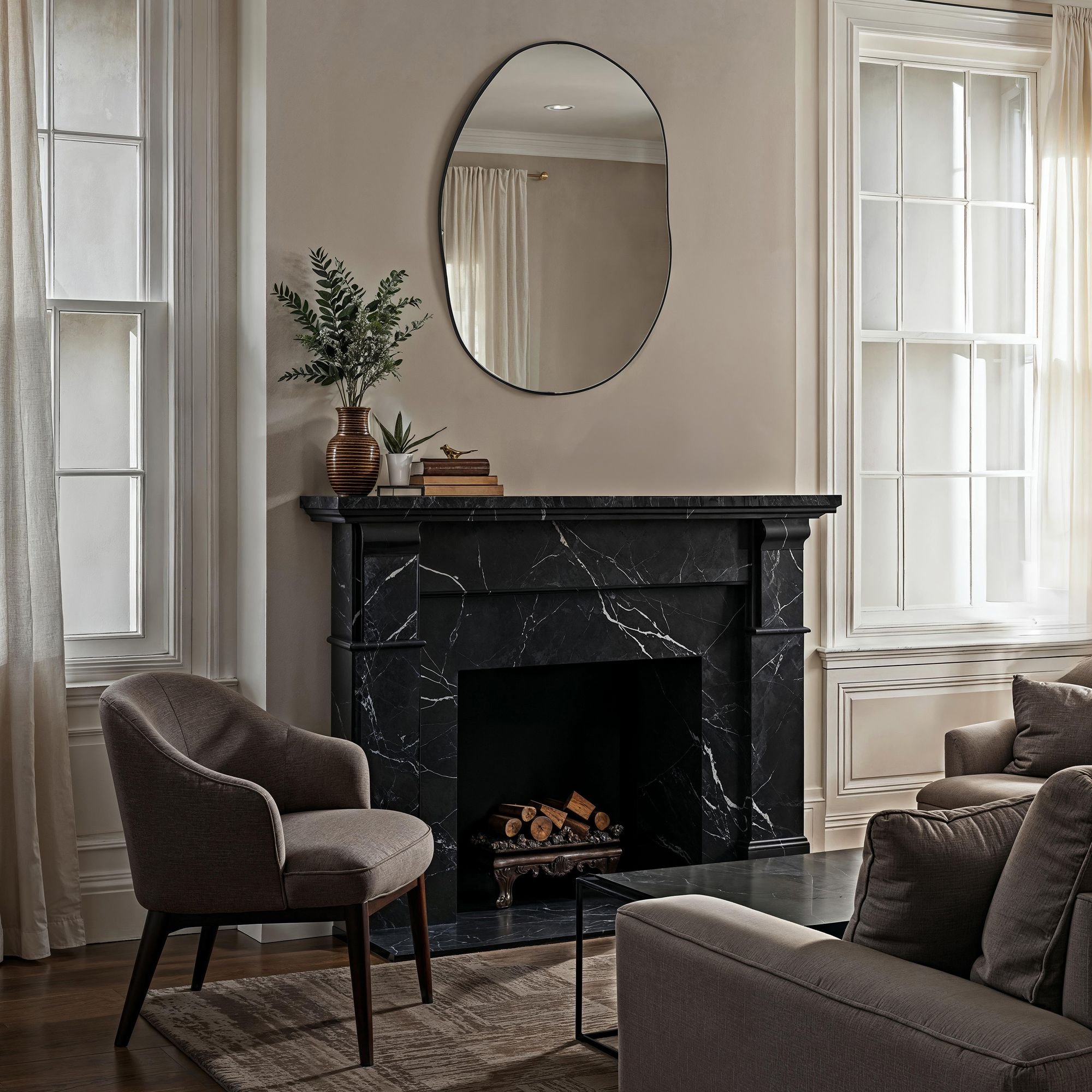 Designed with an organic, free-spirited form and a sleek matte black frame, this wall mirror steps away from ordinary straight lines to add something different to your design scheme. Crystal-clear mirror glass ensures a distortion-free reflection you can only get with high-quality mirrors while 4-way hanging lets you feature it any way you like, to easily elevate any space.