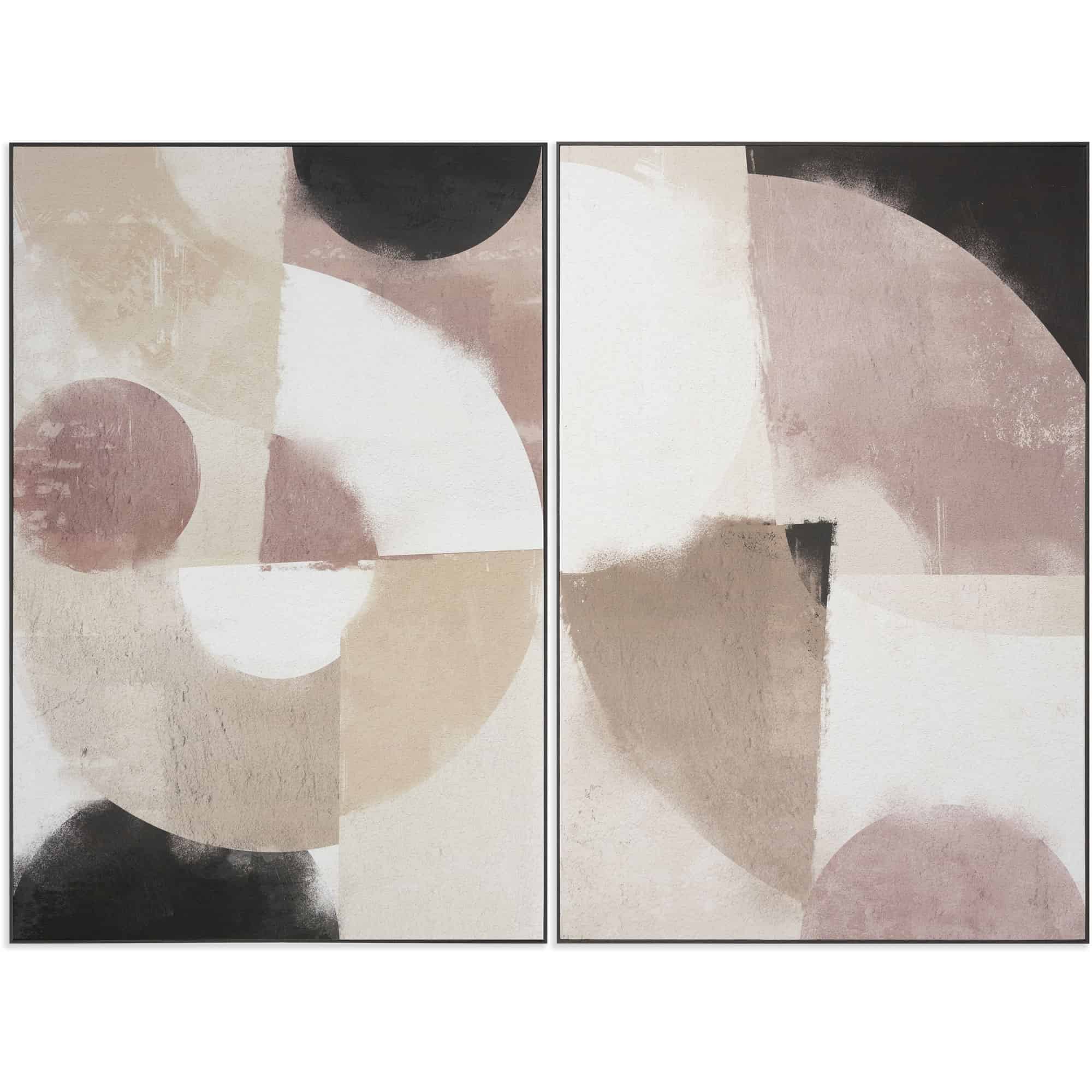 Abstract strokes of taupe, black and dusty mauve radiate a soothing sense of calm in this tropical-inspired diptych from our Luxe Art collection. Printed on textured canvas and finished on a charcoal floater frame.