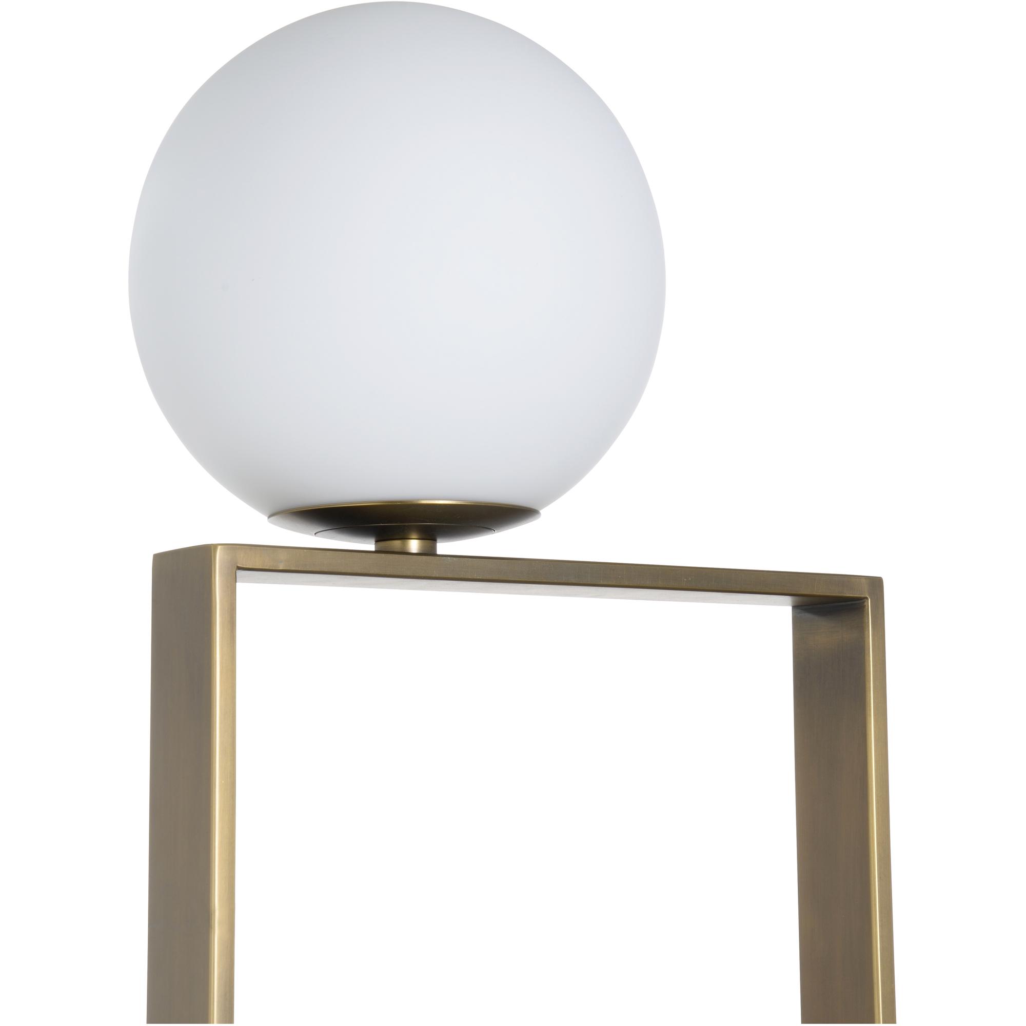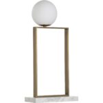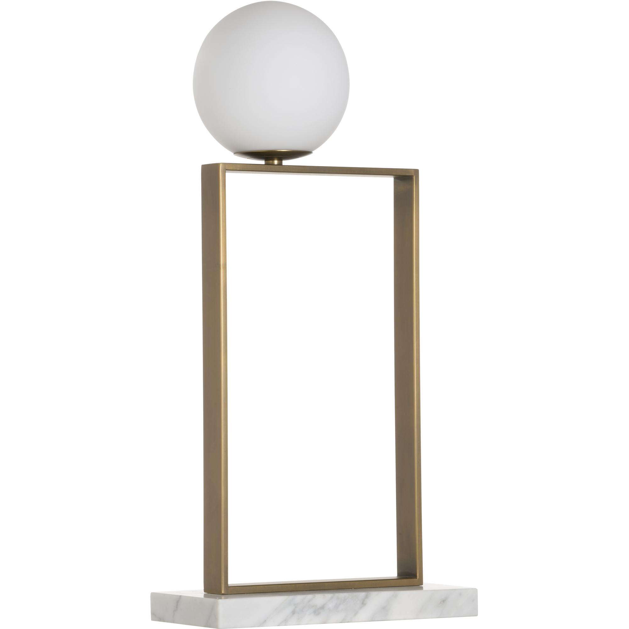 The Milano Table Lamp features clean lines of natural white marble and antique brass topped with an asymmetrically placed milk glass sphere, diffusing light in all the right directions, while the open design allows positioning at all angles. Place this lamp on a sofa table or foyer console for the perfect statement.
