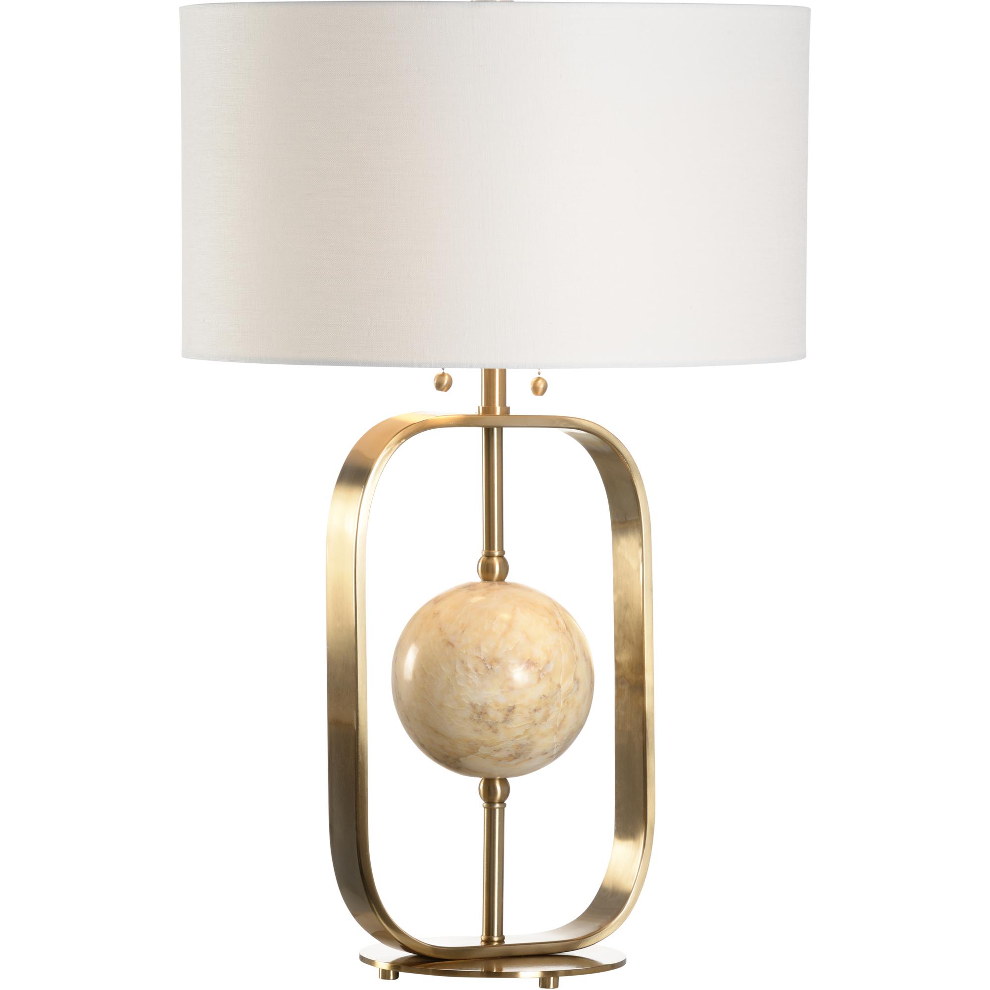 Illuminate an elegant modern space with milazzo lamp. The warm metal base has a coffee bronze finish and features a natural calacatta gold marble orb. This two light accent lamp has pull chains and is topped with an off white linen drum shade, ideal for living areas and bedrooms.