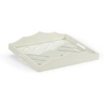 Cream painted wood tray with clear glass bottom inlay, designed by Jamie Merida.