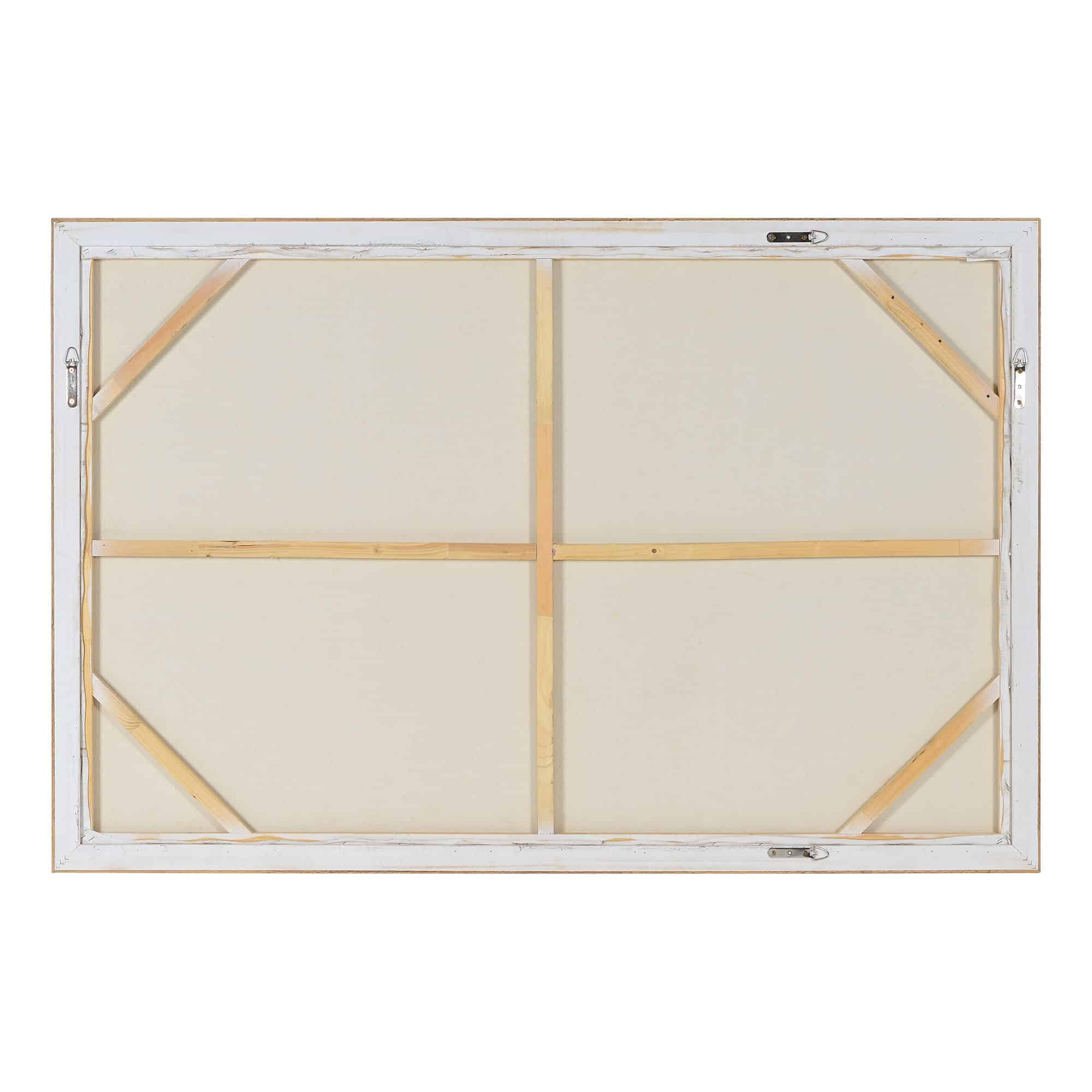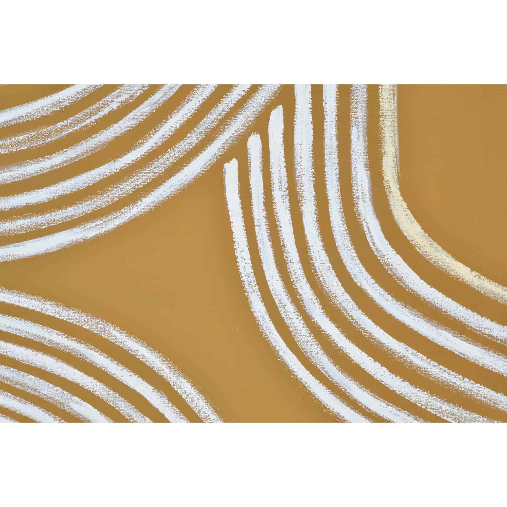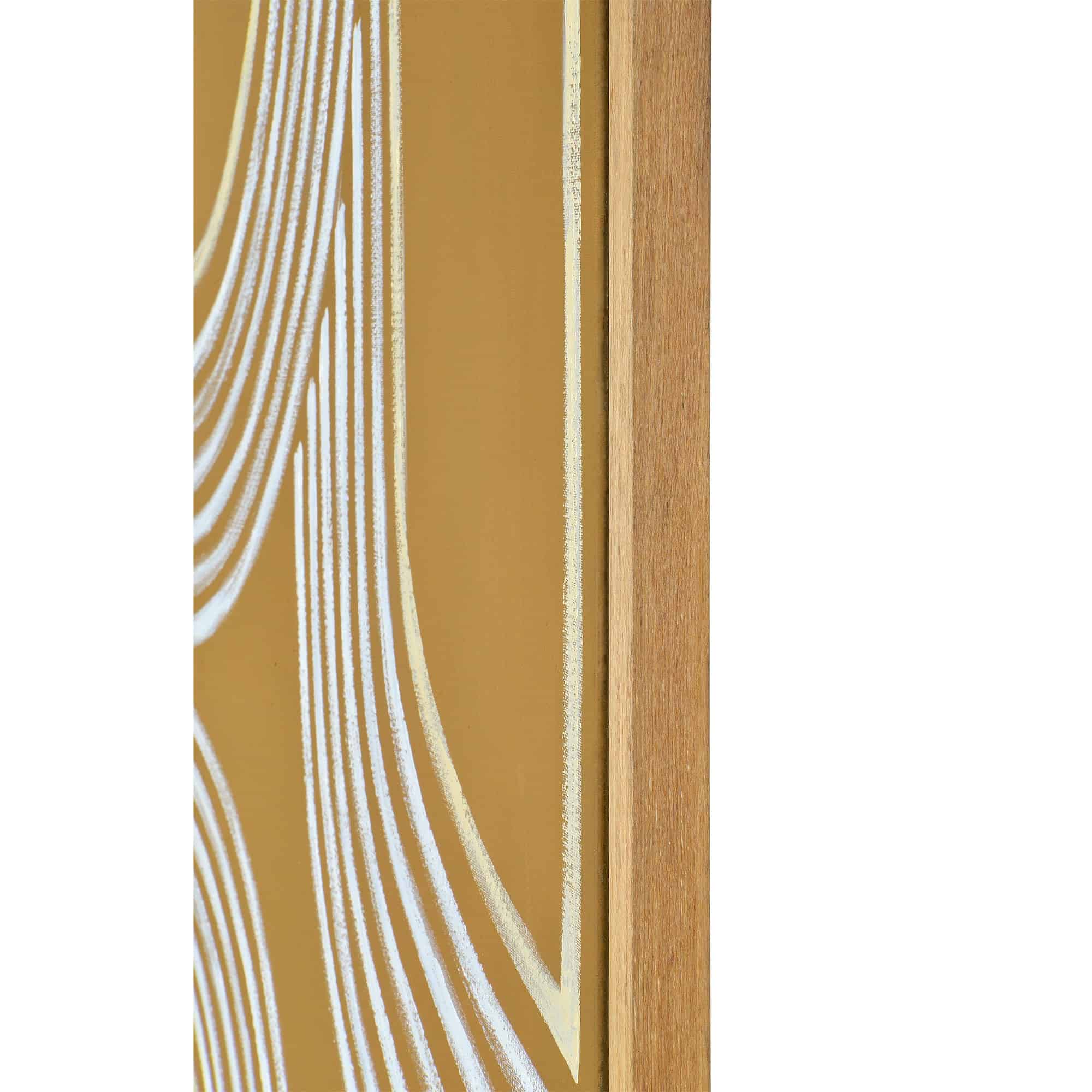 Gilded glamor meets graphic design in this eye-catching art canvas painting. An optimal addition to a gallery wall or a piece to enhance an unadorned area of the home, this work of art’s simple design allows for endless arrangement potential. The white oak frame is well suited for a contemporary organic interior; meanwhile, the gold palette makes it just as fitting for a luxe space.