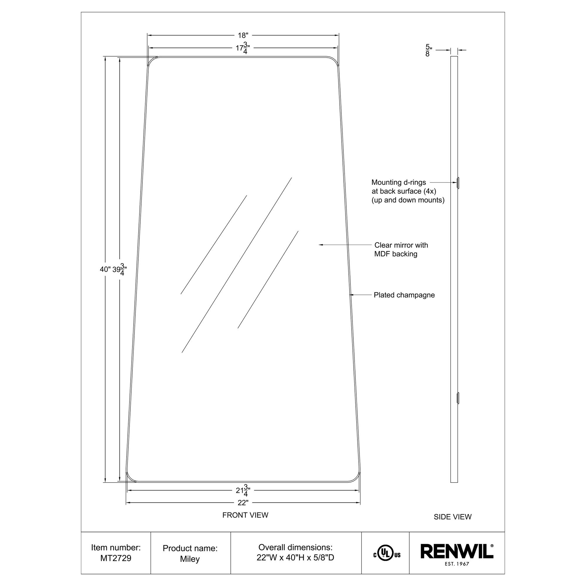 When a space requires the simplest of designs, this stylish wall mirror answers the call. Mixing all the right elements including a slim, sleek champagne-plated frame, gently rounded corners and distortion-free glass, this 22†x 40†wall art mirror can be hung horizontally or vertically to deliver form and function that’s perfect for any contemporary interior.