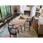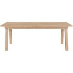 The Miller Dining Table is a strong yet airy statement piece, featuring angled legs and a robust tabletop in a rustic natural oak finish. Extendable to 120 inches, it’s an entertainer’s dream table.