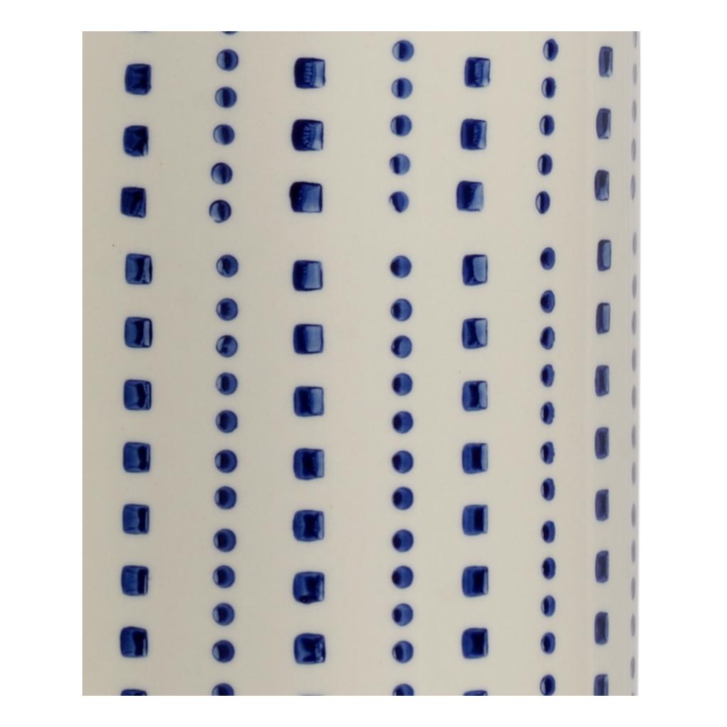 Hand painted blue and white glazed ceramic.