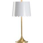 Add a touch of whimsy to your space with the Mirasol Lamp in White. This elegant brass lamp features a slender, graceful stem leading to a playful scalloped tole shade in a neutral white. The shade’s interior is finished in gold, adding a warm, inviting glow to the light it casts. Perfect as a bedside or accent lamp, the Mirasol Lamp combines classic sophistication with a hint of fun, making it a versatile piece that complements both modern and traditional decor styles.