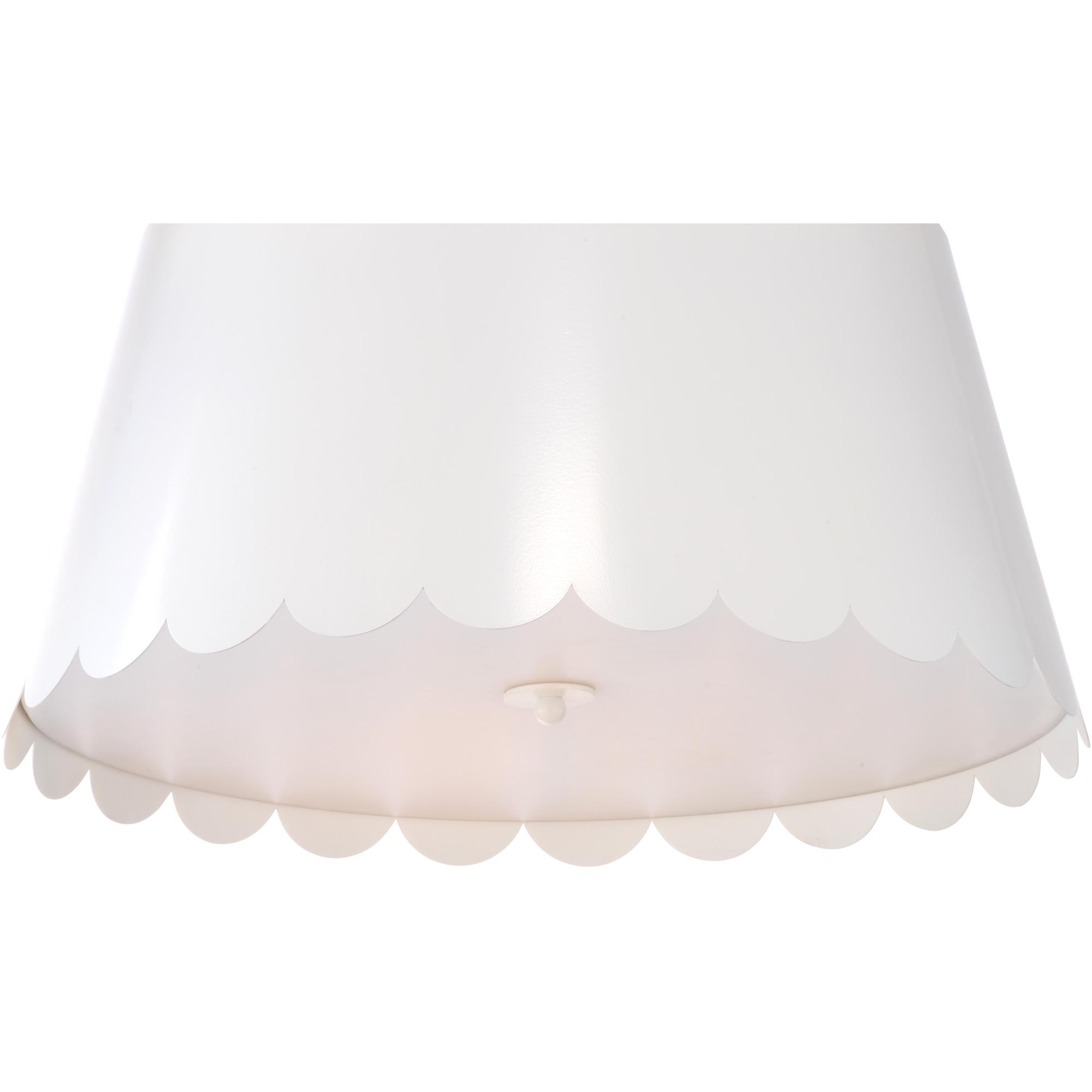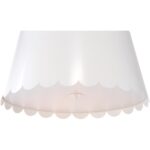 Designed for Wildwood by Meg Braff Designs, this sleek pendant features a playful scalloped detailing suspended from a white chain. (Inside of shade is gold). Mirasol pendant has two lights that will brighten a child’s room, breakfast nook or small foyer. Comes with a 5″ canopy and 6′ chain.