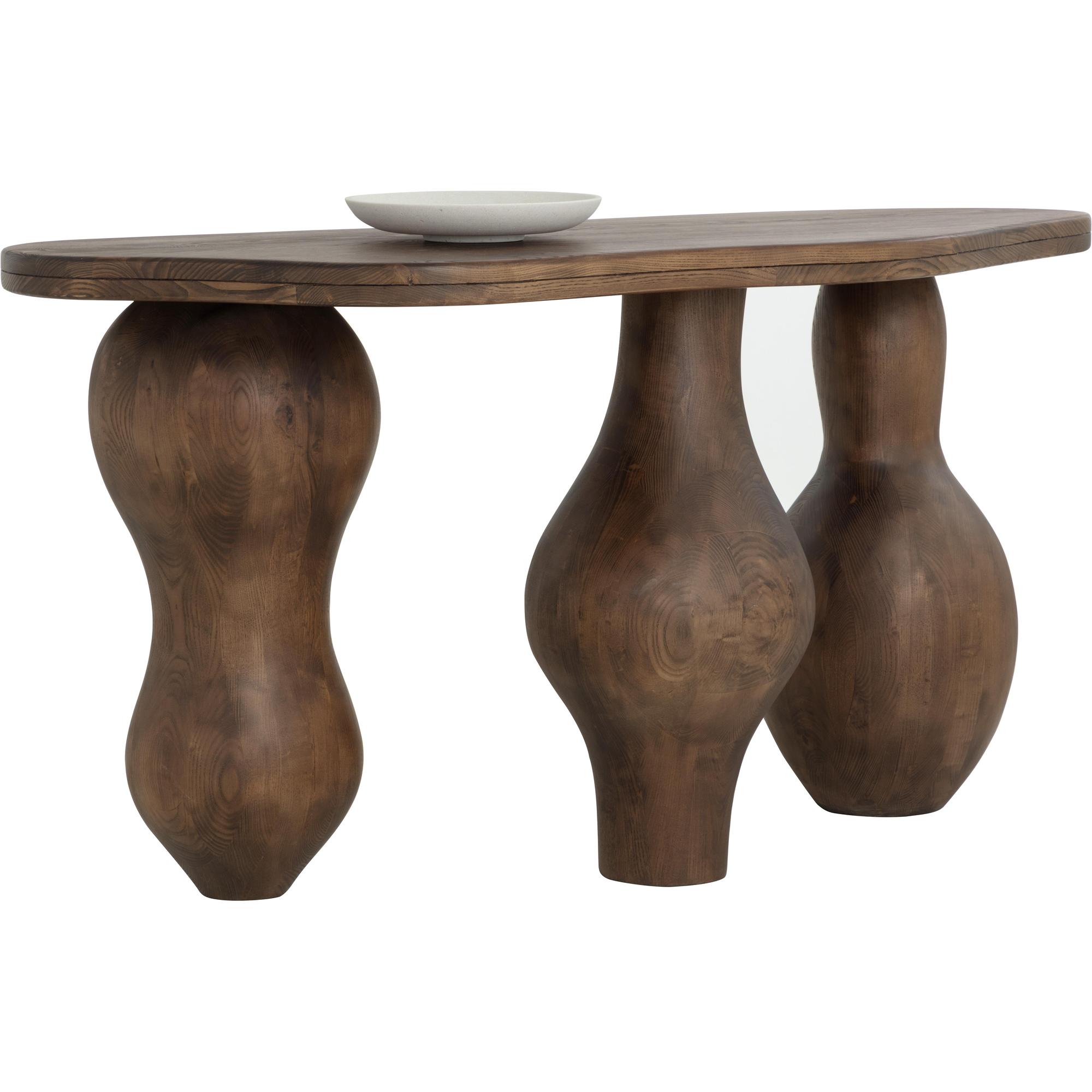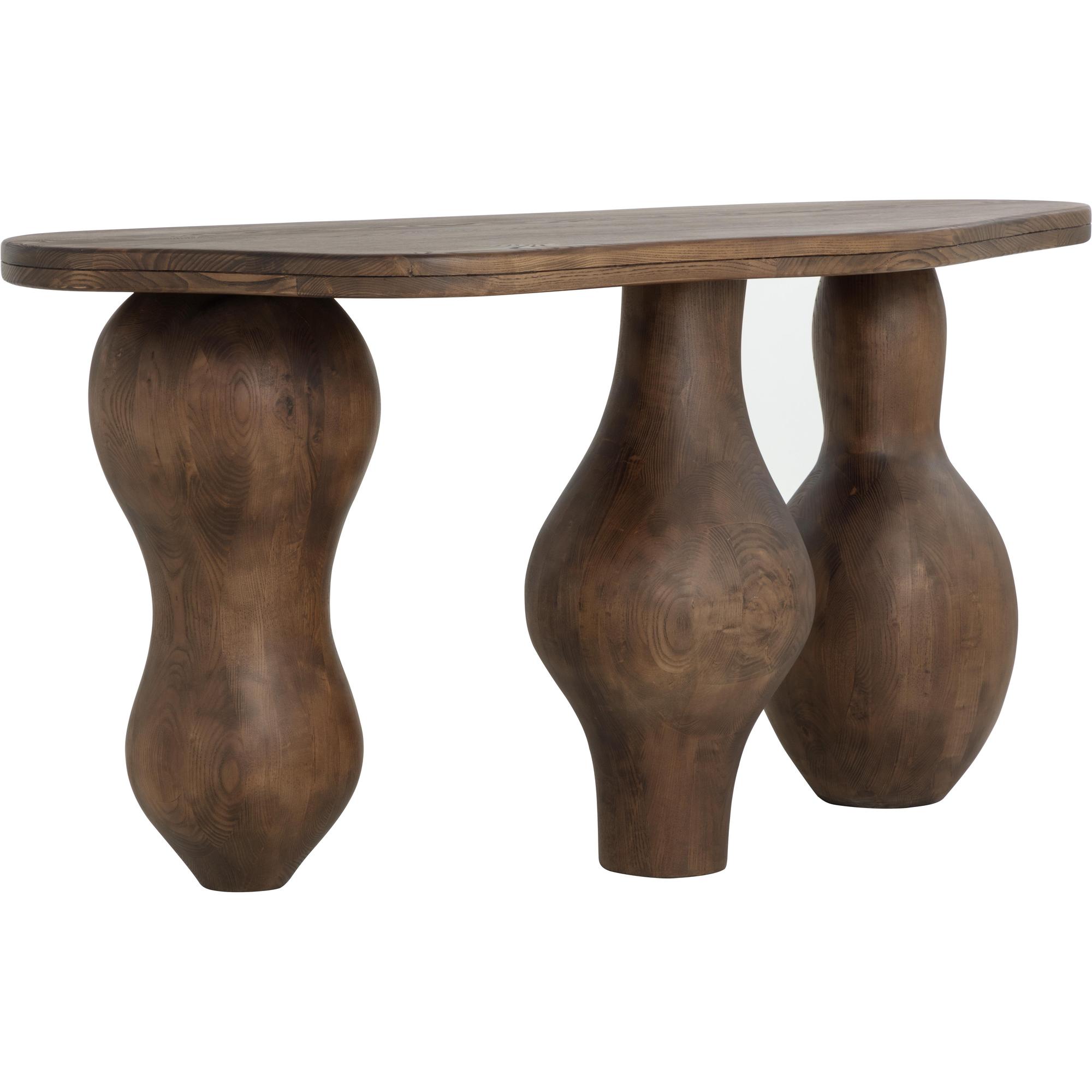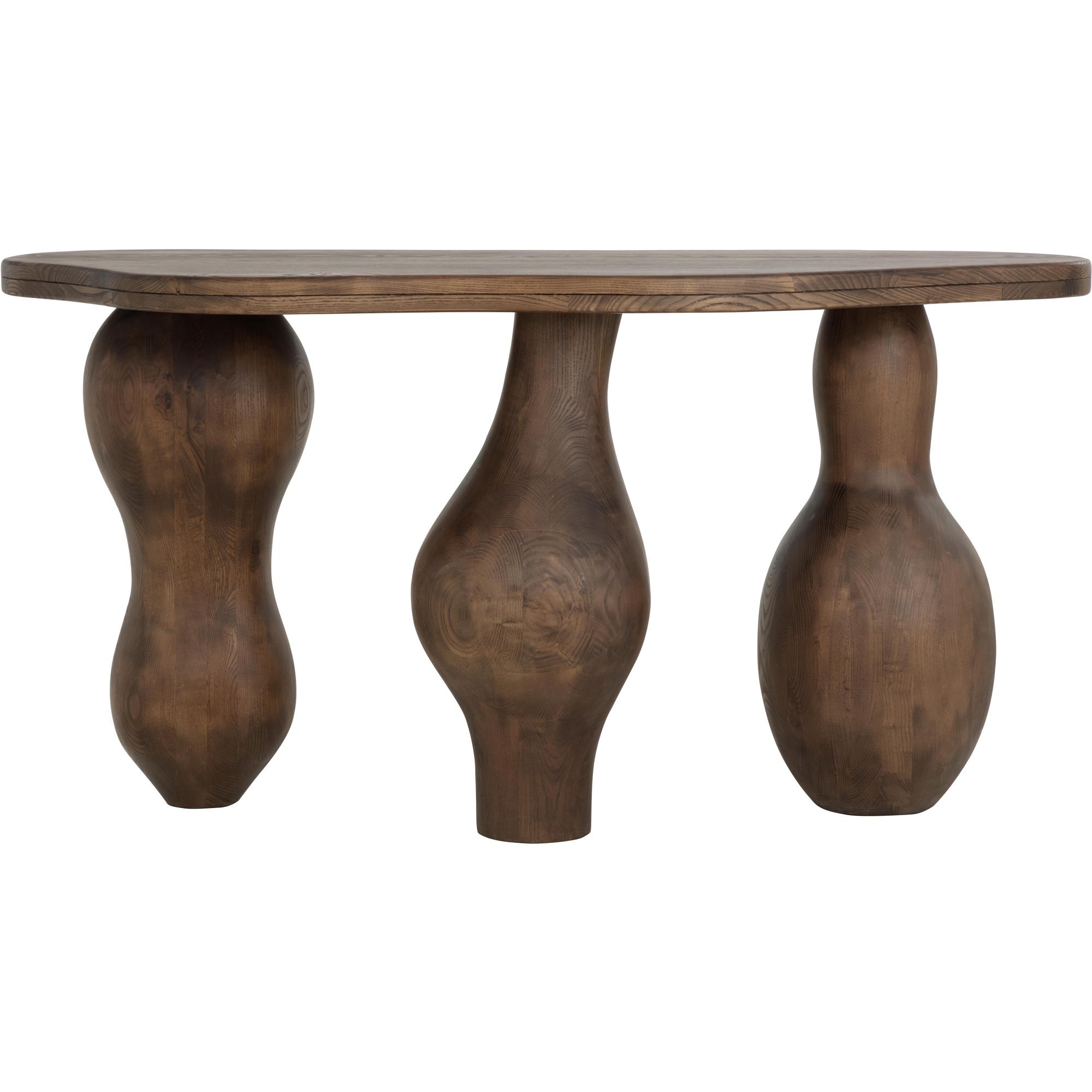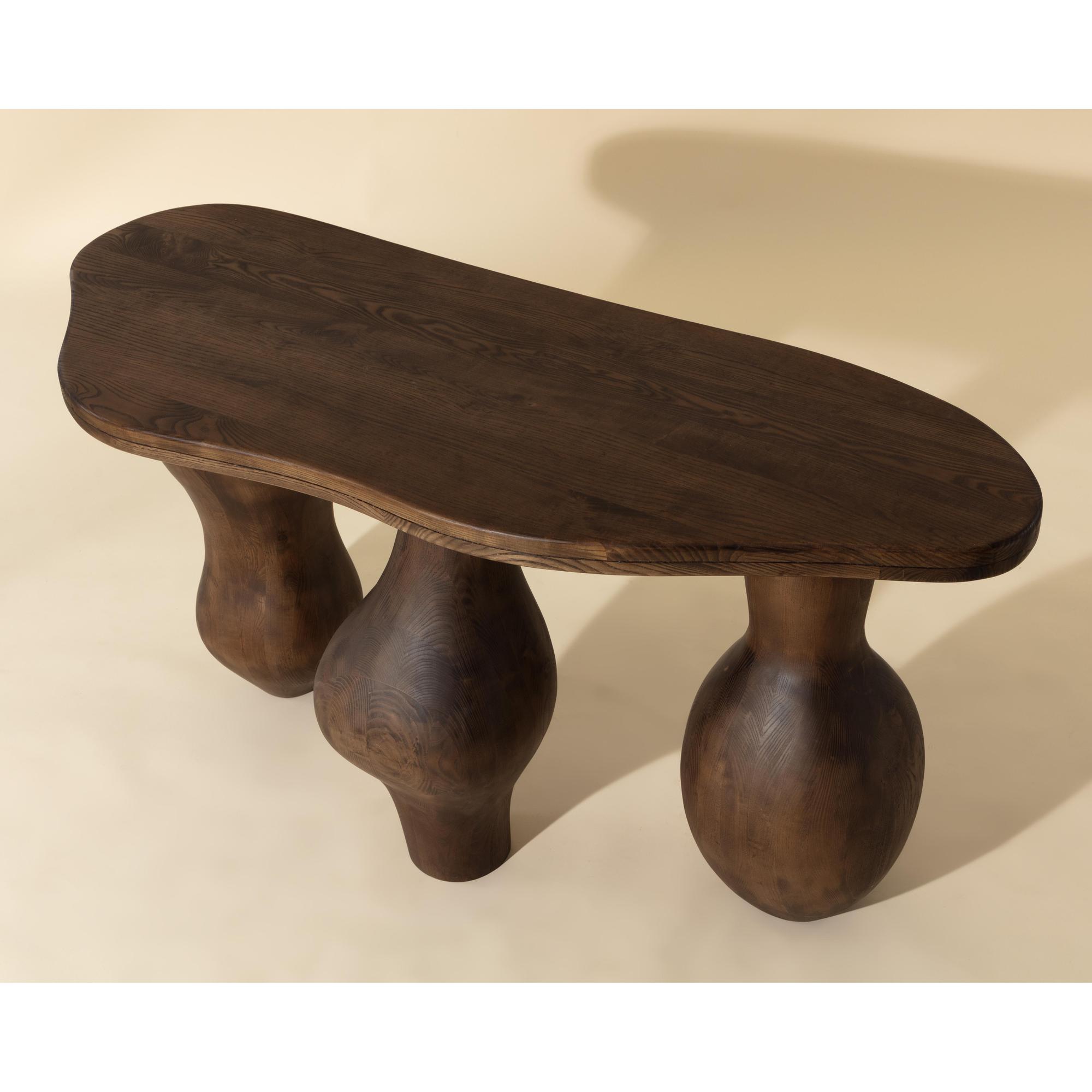 The Miro Console expresses the uniqueness of organic-inspired modern design with its droplet legs and top. Masterfully sculpted in solid polished brown ash wood and with a smooth asymmetrical top, this console showcases the beauty in irregularity.
