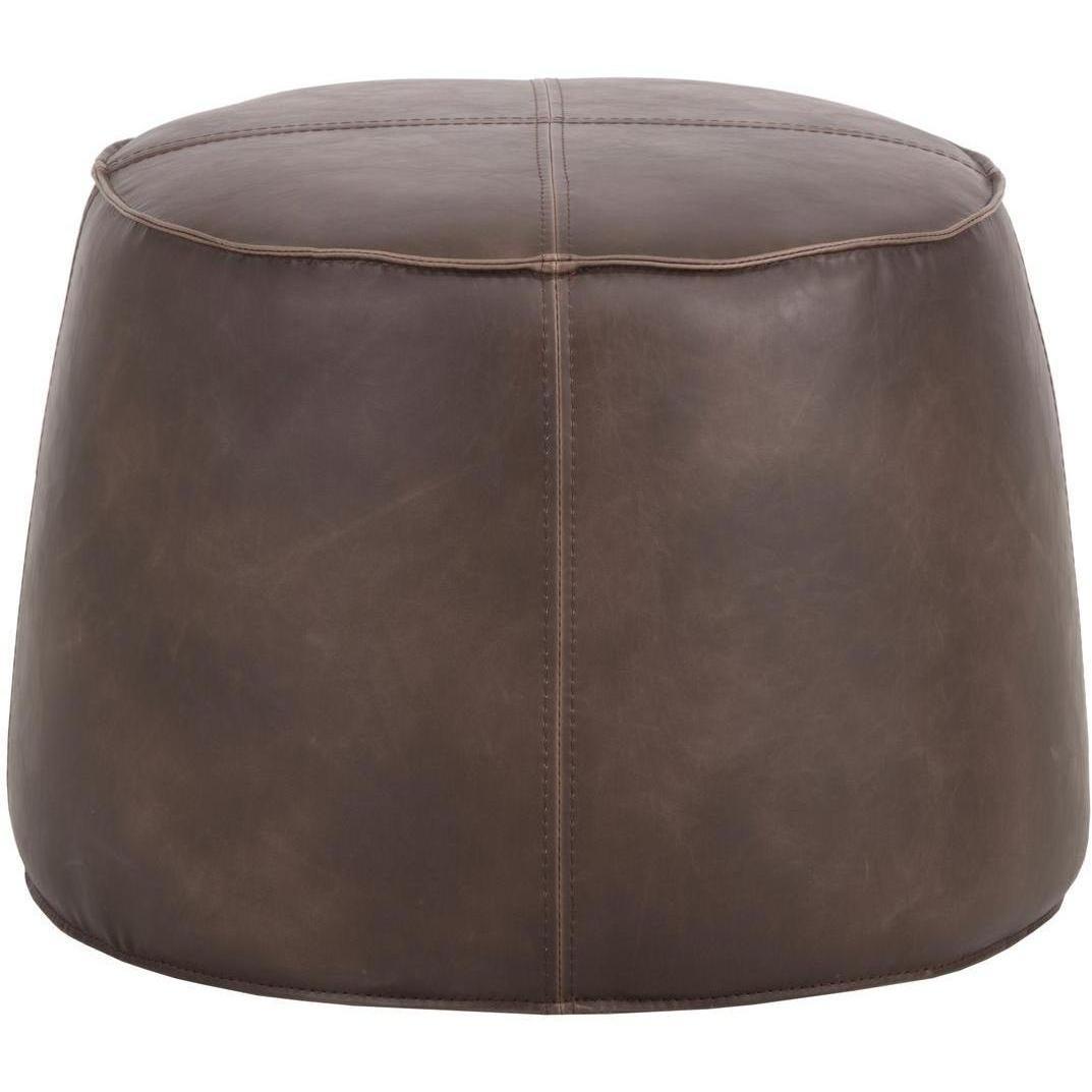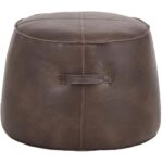 A handsome round ottoman stocked in a vintage-look havana dark brown, tobacco tan and overcast grey faux leather. Features a decorative handle and exposed stitching for added dimension. Suitable for residential and commercial environments. Handle With Care: This design has been crafted with faux leather. Faux leather is manufactured to reflect the natural characteristics of leather; as such, colour variations, markings, wrinkles, grooves, and light scratches are appreciated characteristics. No two pieces will be alike. Visit our Product Care page for more information on how to ensure the lasting beauty of this piece.
