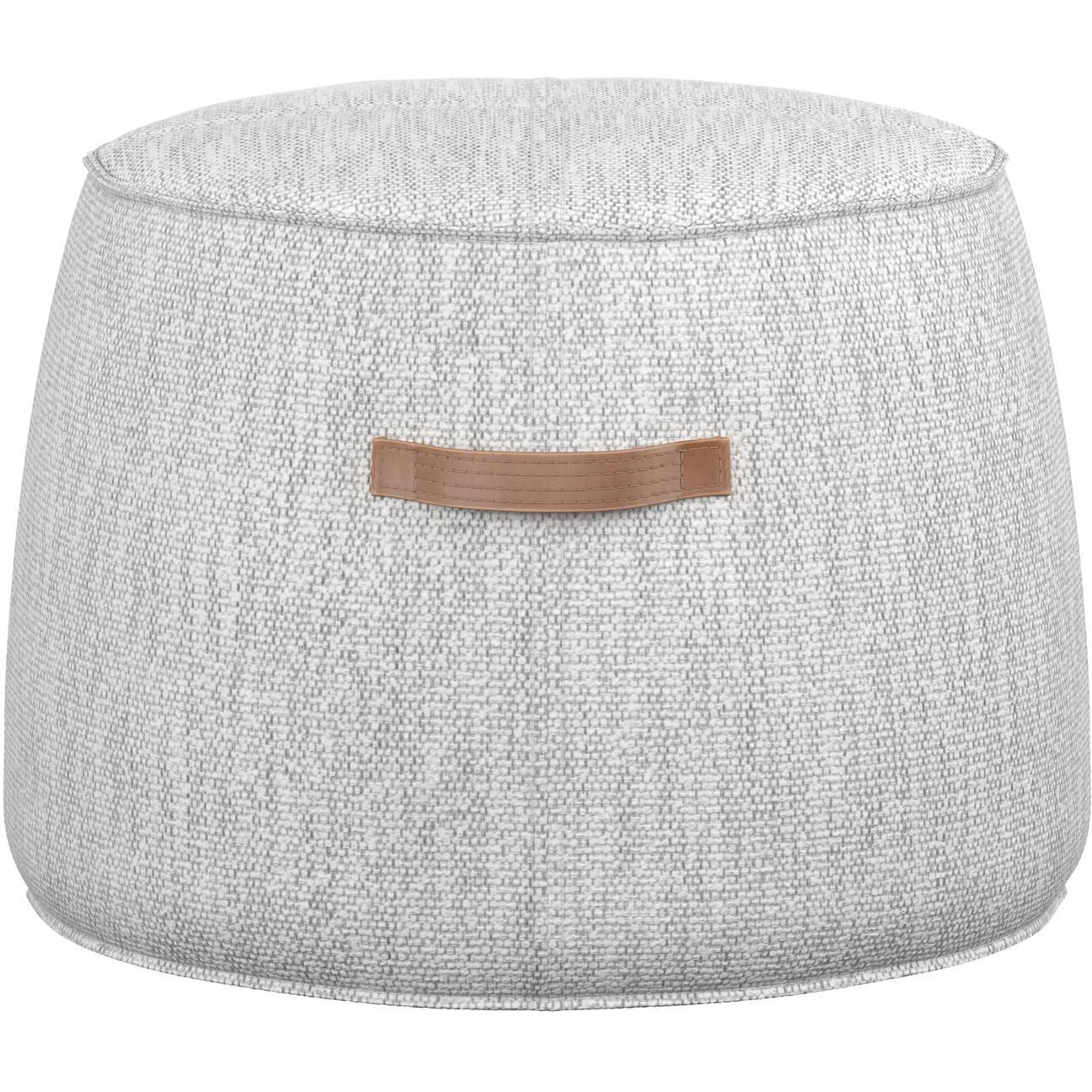A handsome round ottoman stocked in a merino cotton performance fabric. Features a decorative handles in tobacco tan faux leather with exposed stitching for added dimension. Suitable for residential and commercial environments. Performance fabric is moisture repellent, durable and easy to clean. Handle With Care: This design has been crafted with faux leather. Faux leather is manufactured to reflect the natural characteristics of leather; as such, colour variations, markings, wrinkles, grooves, and light scratches are appreciated characteristics. No two pieces will be alike.