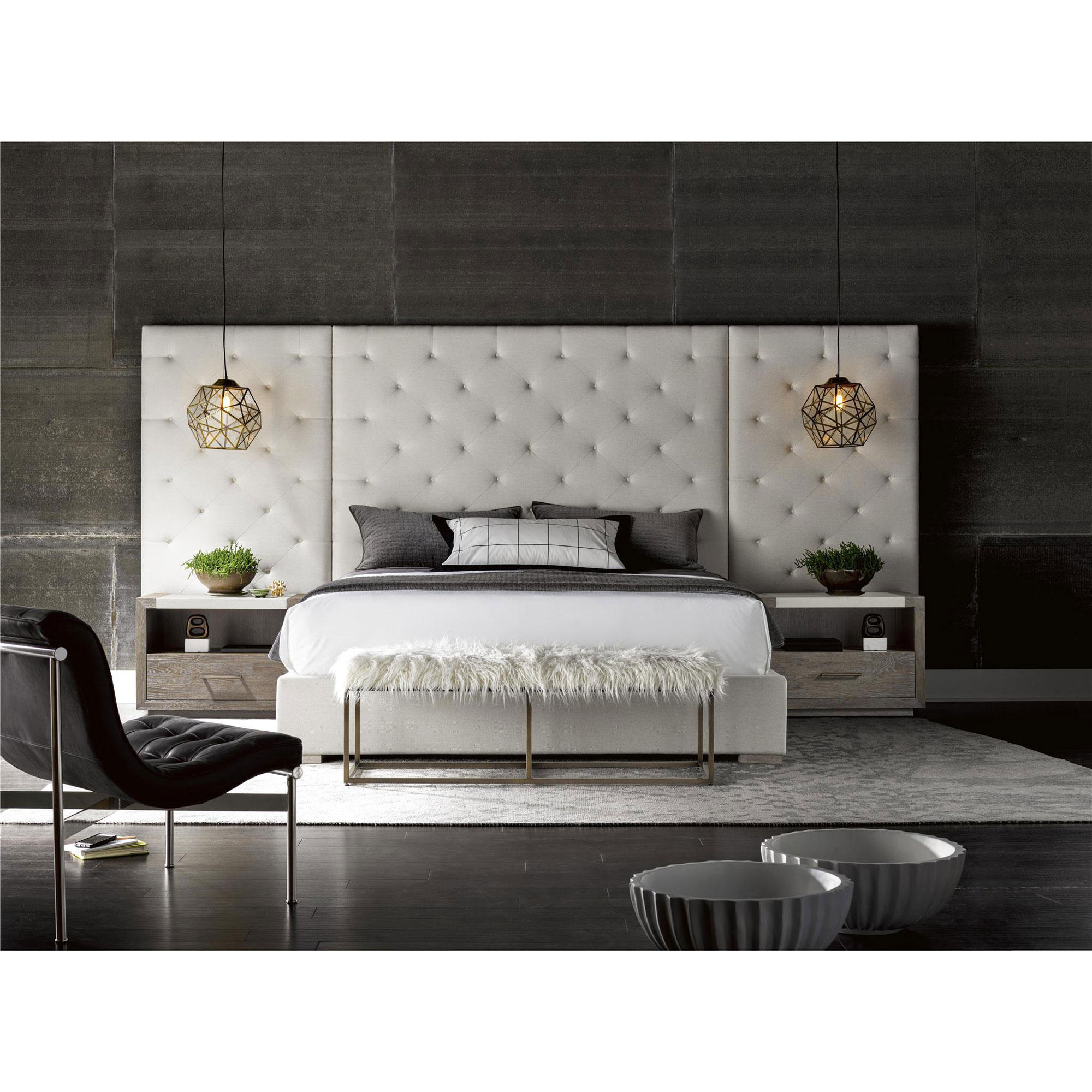 Completely customizable with the addition of extra panels, the glamorous Brando Bed is defined by an oversized, button tufted headboard upholstered in a white performance fabric.