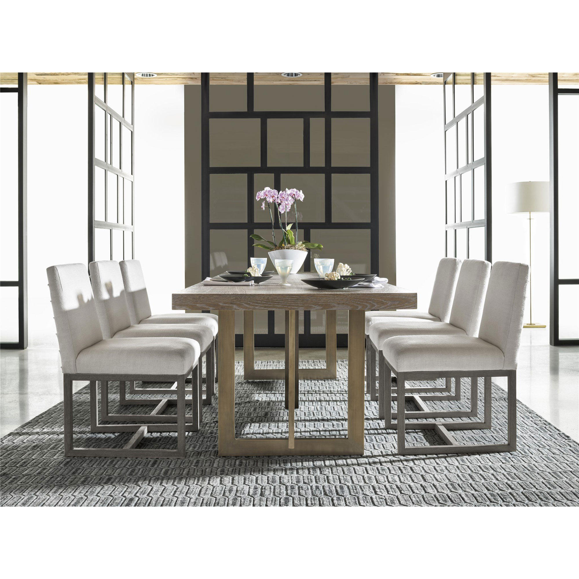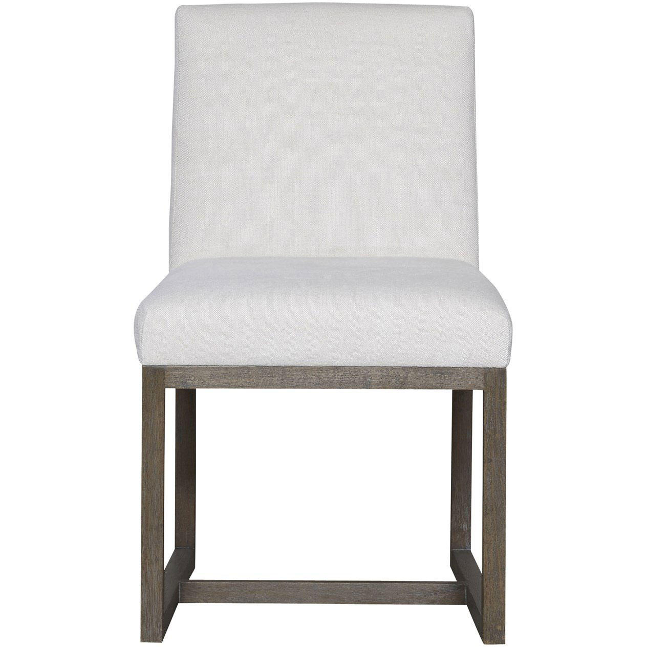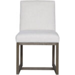 The plush upholstered seat of the Carter Side Chair rests atop its perfectly angular base, while its quaint fabric detailing adds a unique and unexpected touch.