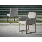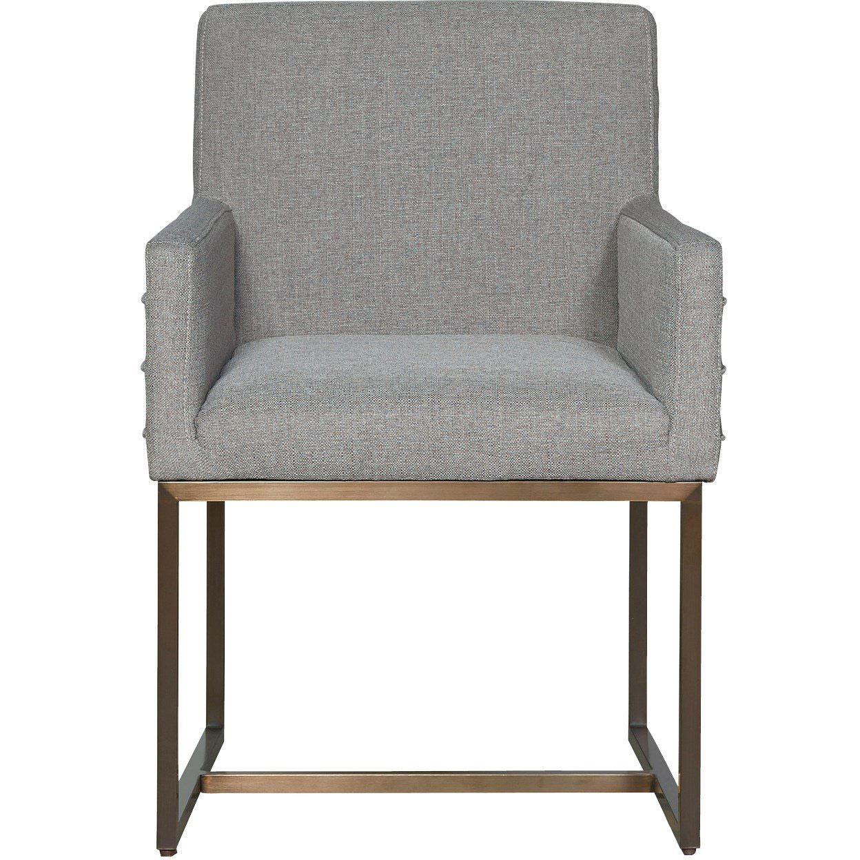 A bronze base, distinguished seat design, and a subtly welted back come together to create the Cooper Arm Chair, a stylish dining room accent.