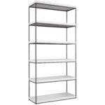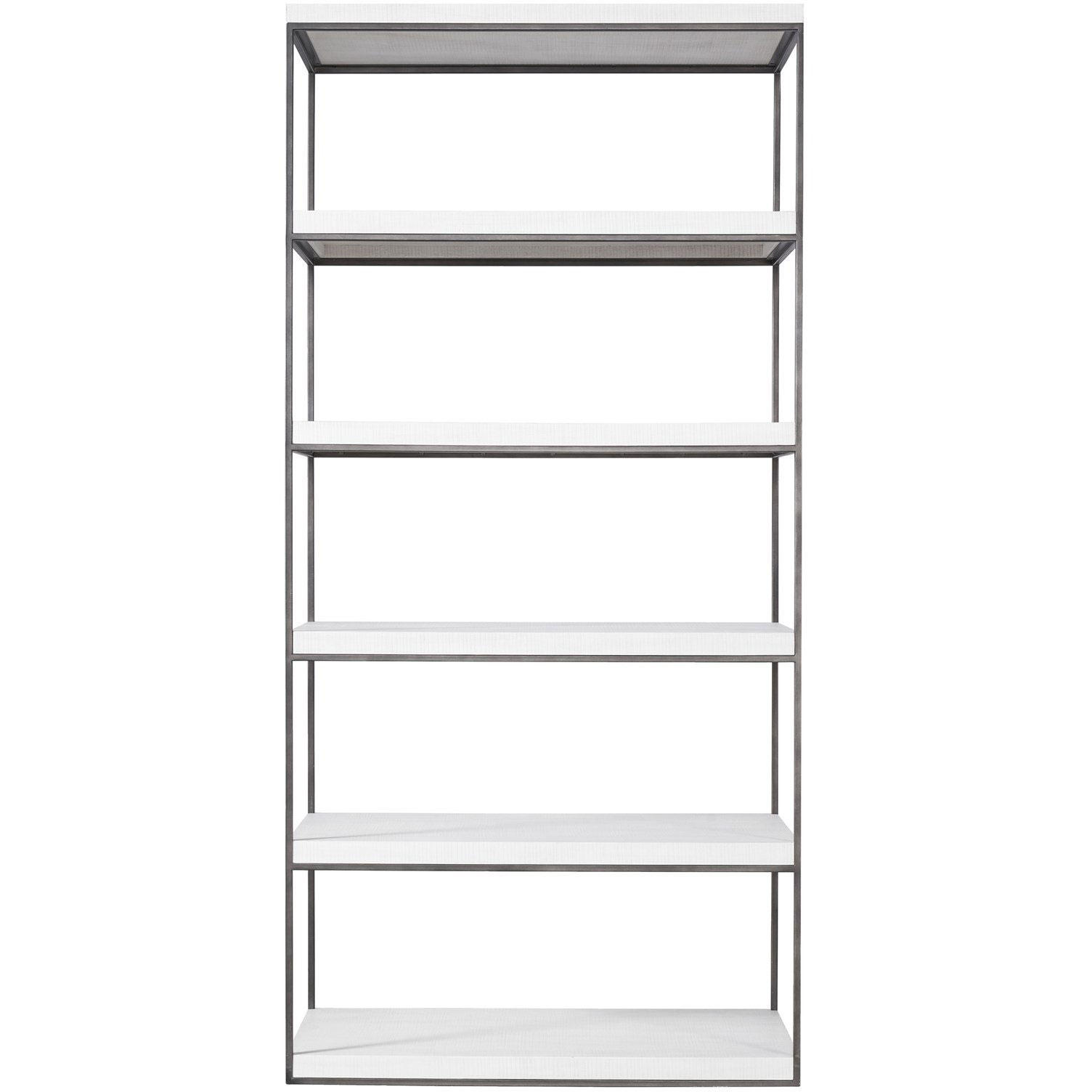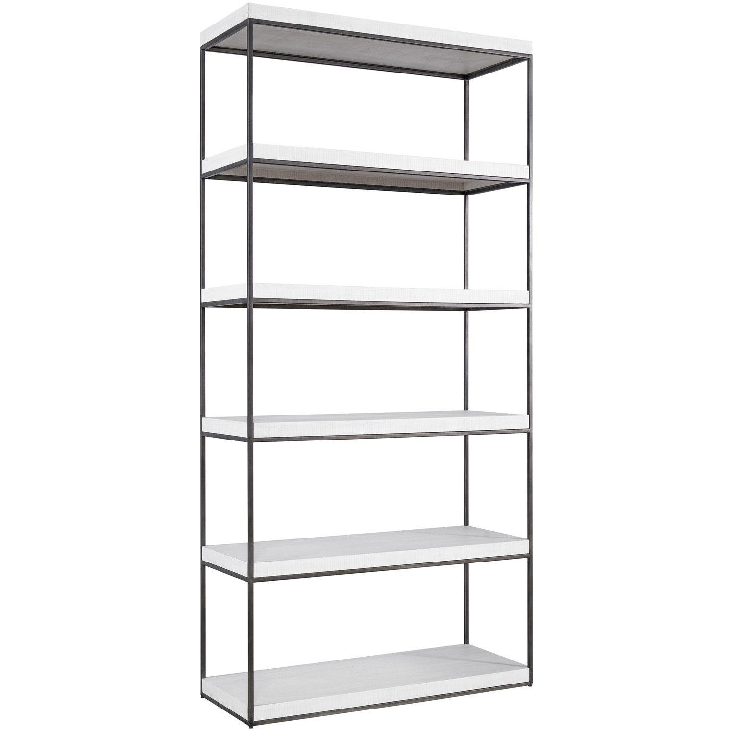 Boasting open-air shelves encased in a clean silhouette, the Braxton Etagere offers an abundance of storage space paired with a modern, mixed material body.