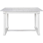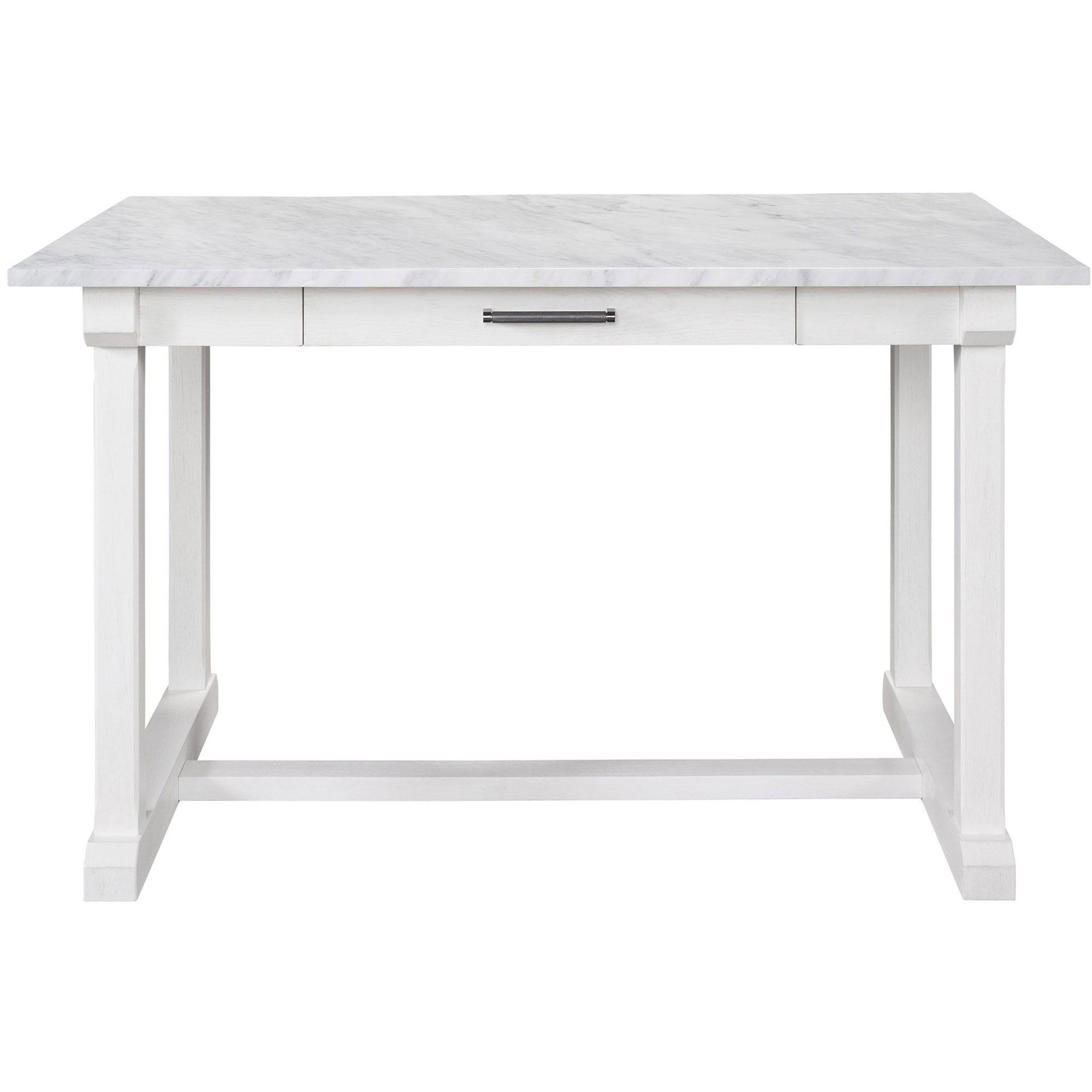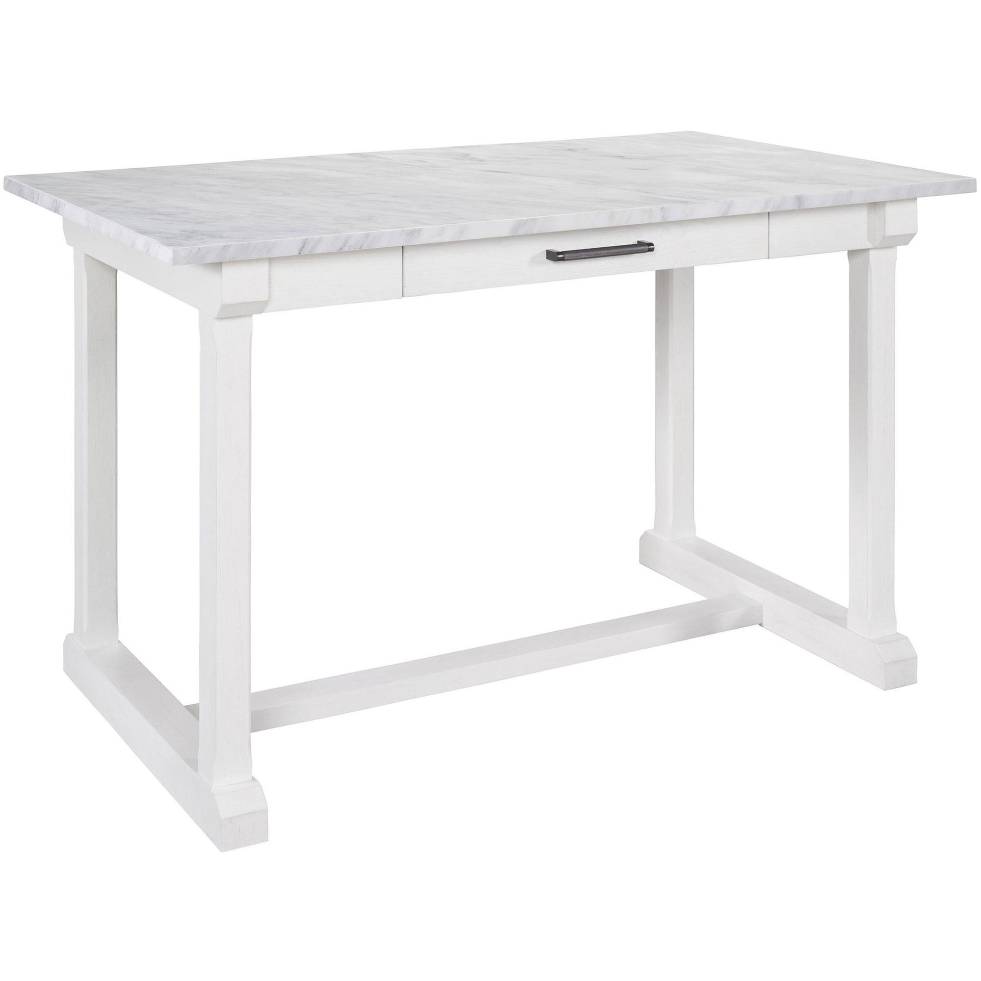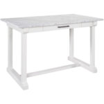 The Elena Counter Table is a delightfully modern furnishing, built with a smooth stone top paired with a convenient storage drawer and a fresh white finish.