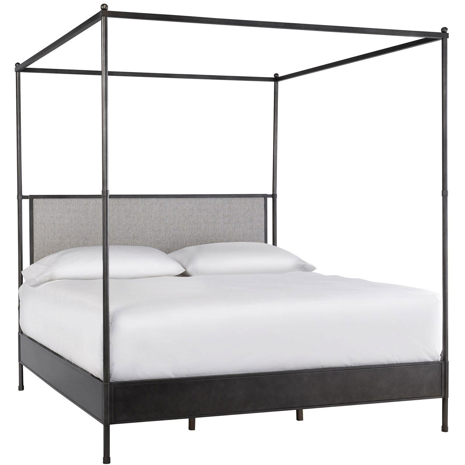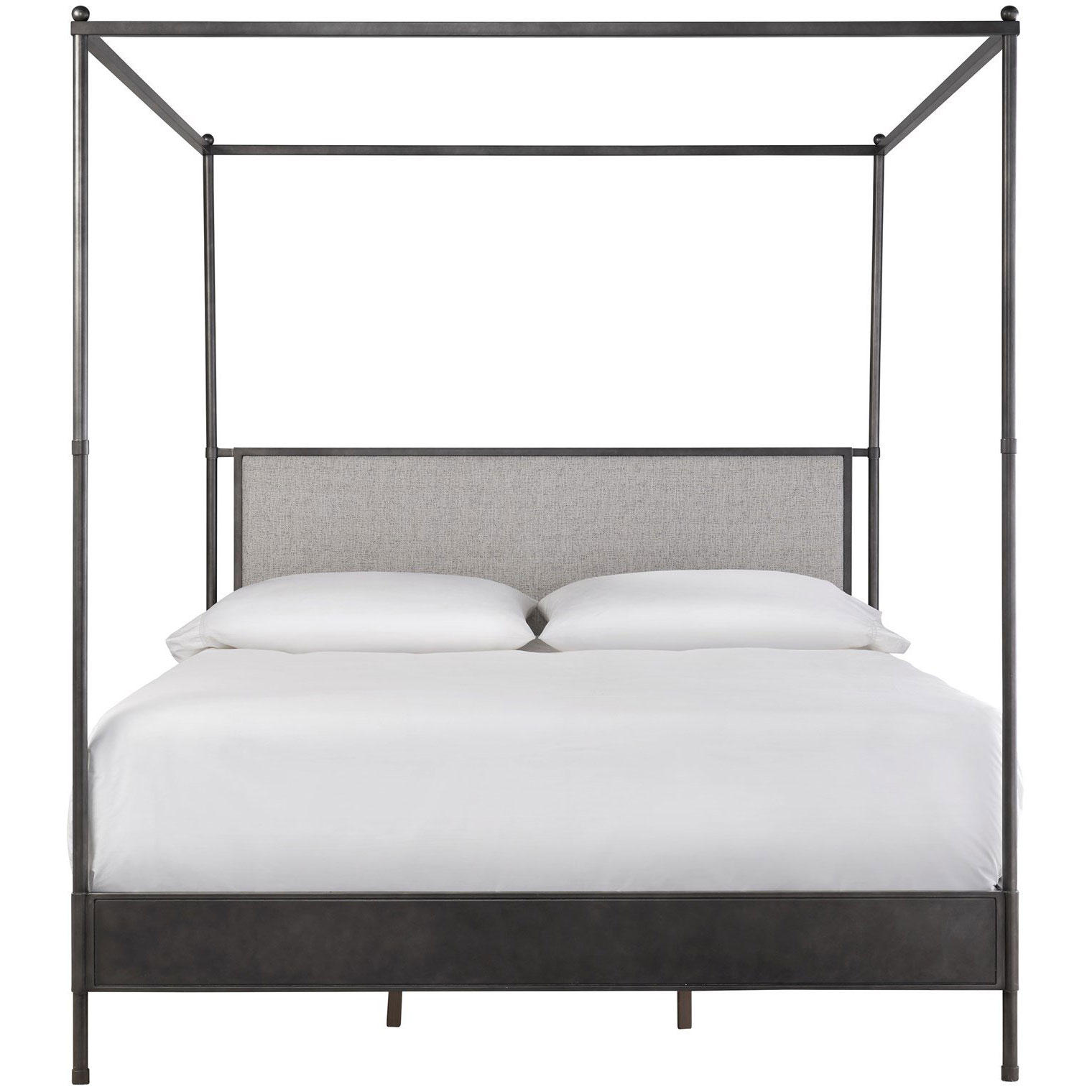 An updated take on farmhouse style, the Kent Poster Bed features a sleek metal frame and a lux upholstered headboard, bringing an abundance of sophistication to any bedroom space.