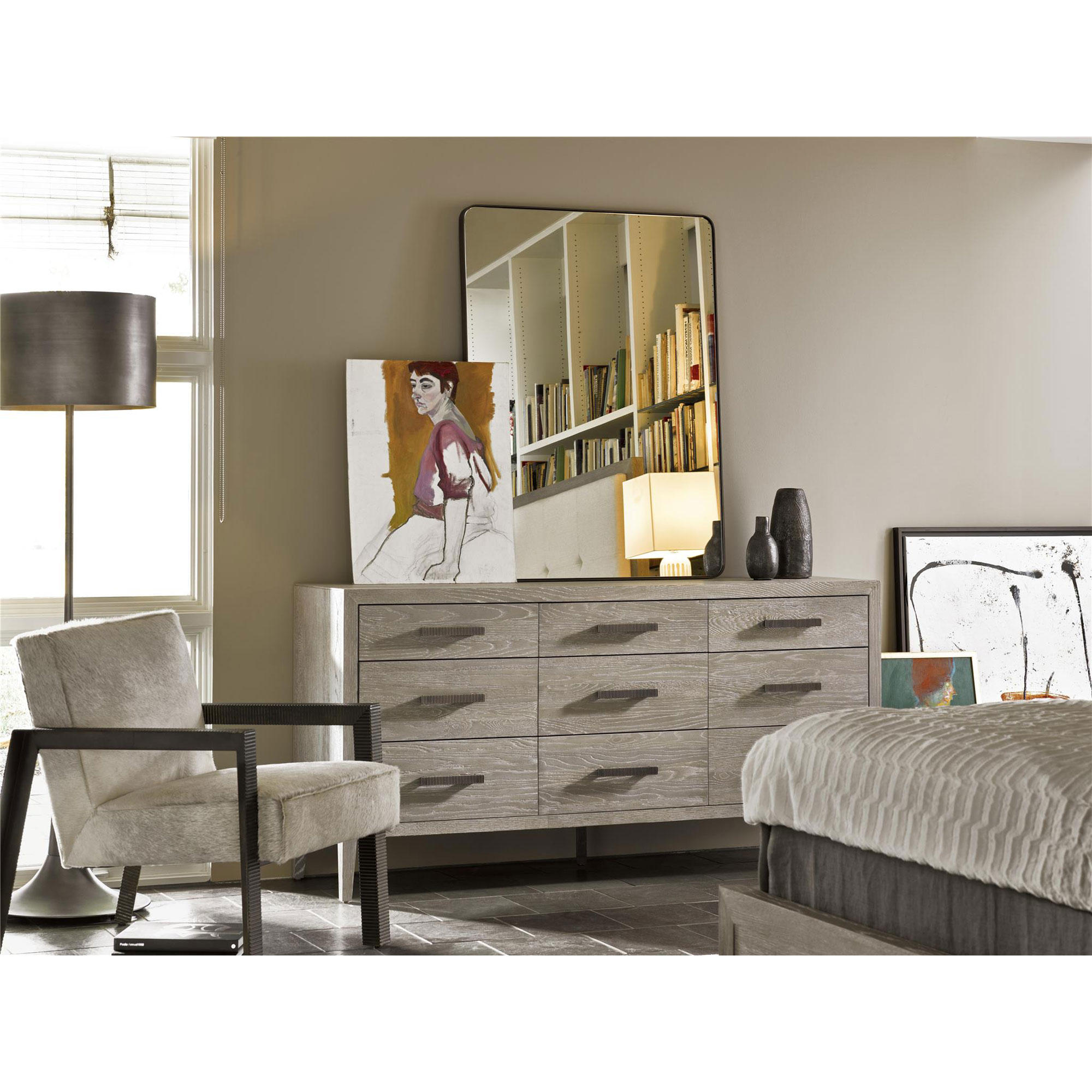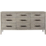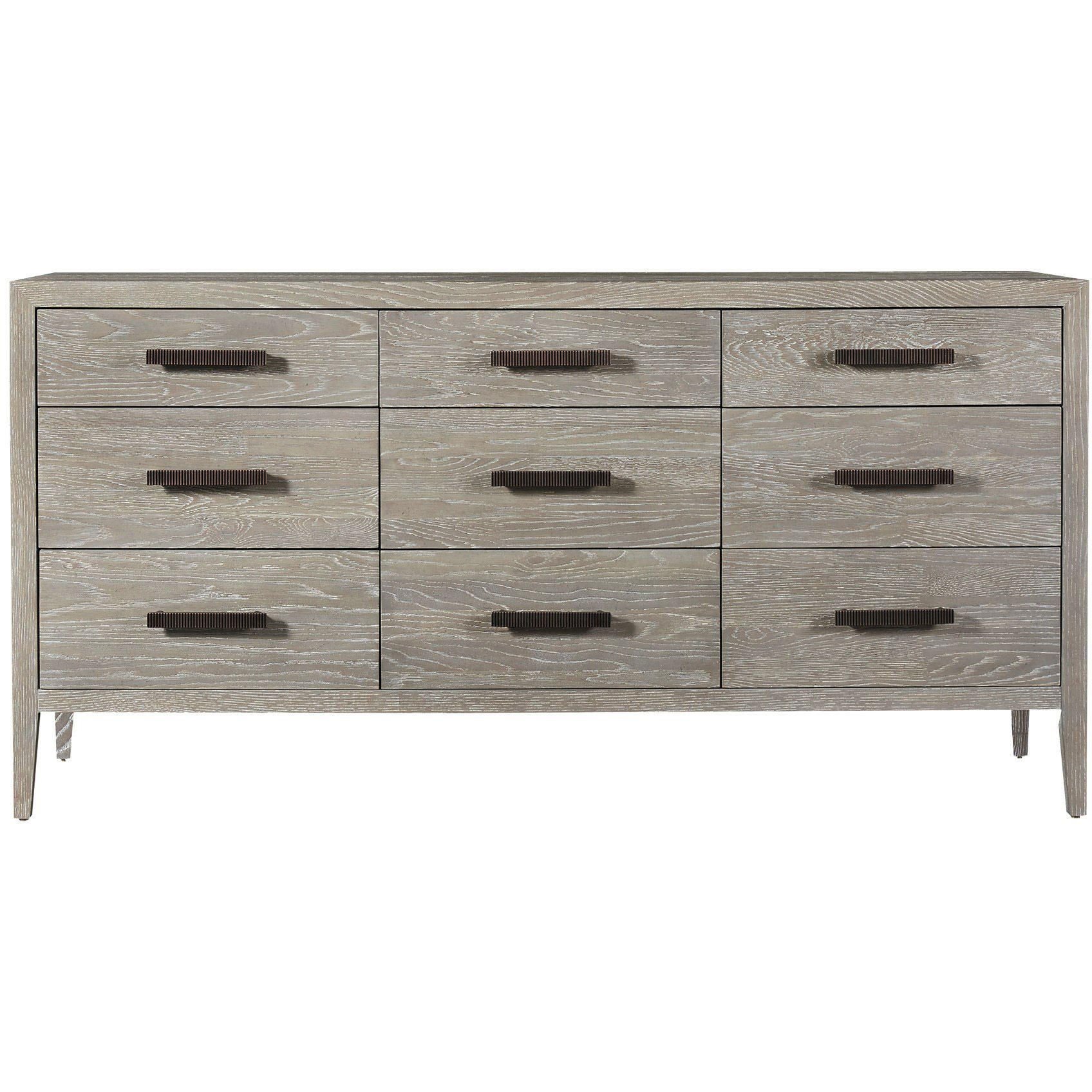 Crafted with nine drawers, a light gray finish, and delicately ridged hardware, the Kennedy Dresser fuses an exquisitely clean aesthetic with ample storage space.