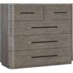 Finish: Mink finish: flat cut quartered oak veneers with wire-brush detailing in a dark, earthy brown with notes of black delivering a timeless aesthetic. Bar pulls wrapped in leather.