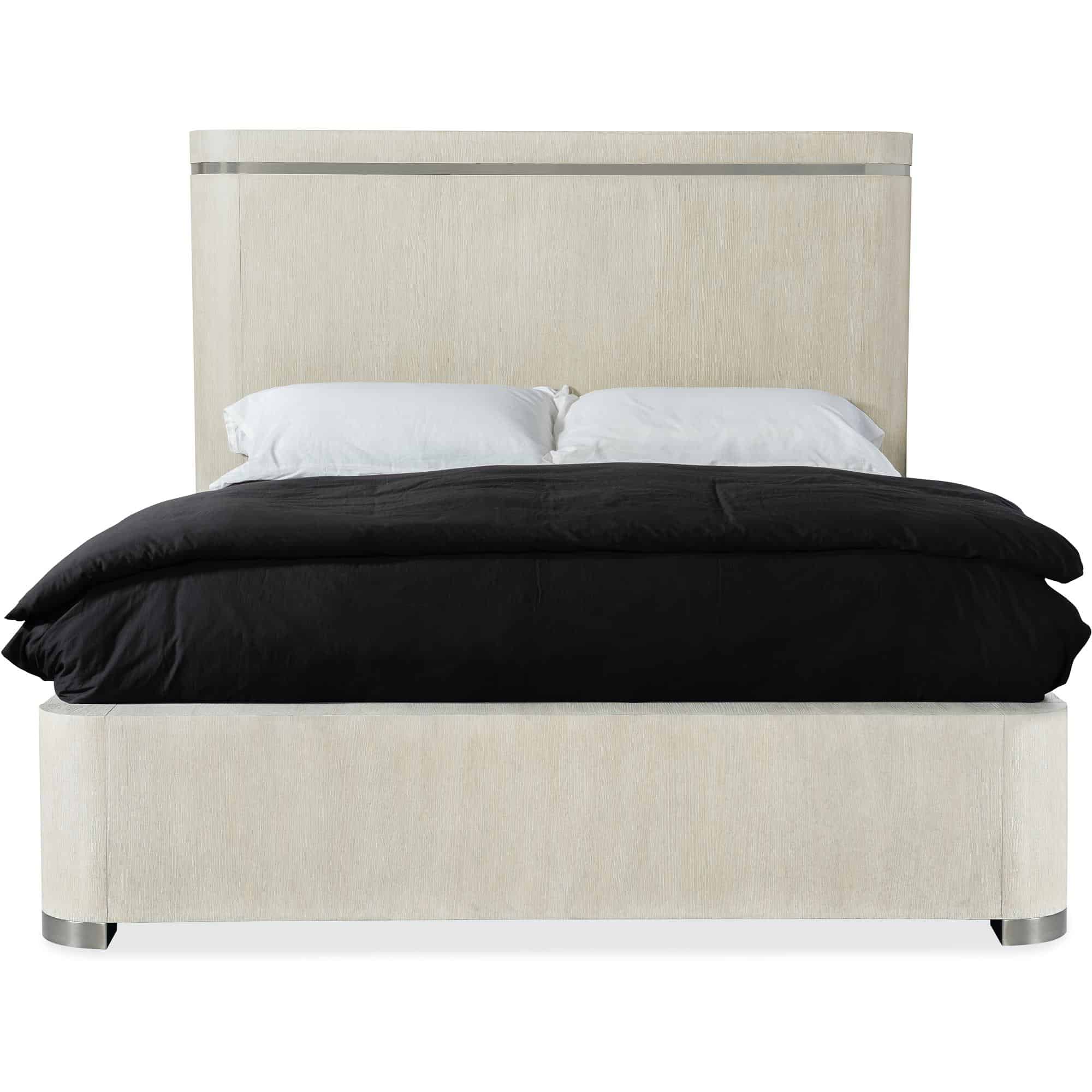 Metal inlay trim in headboard