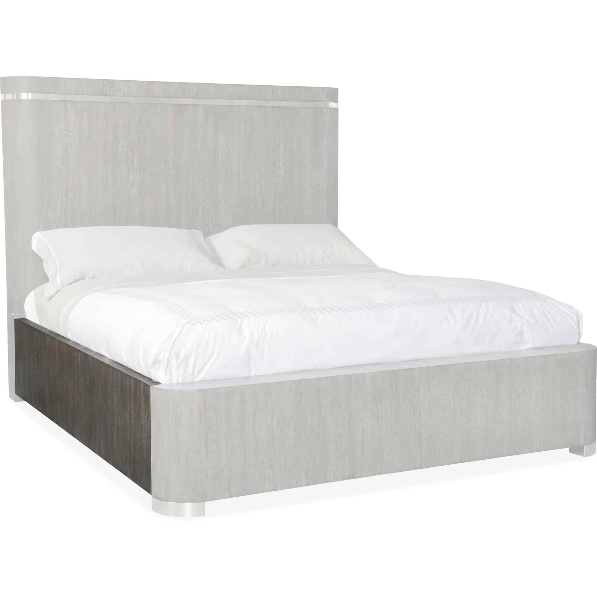 Metal inlay trim in headboard