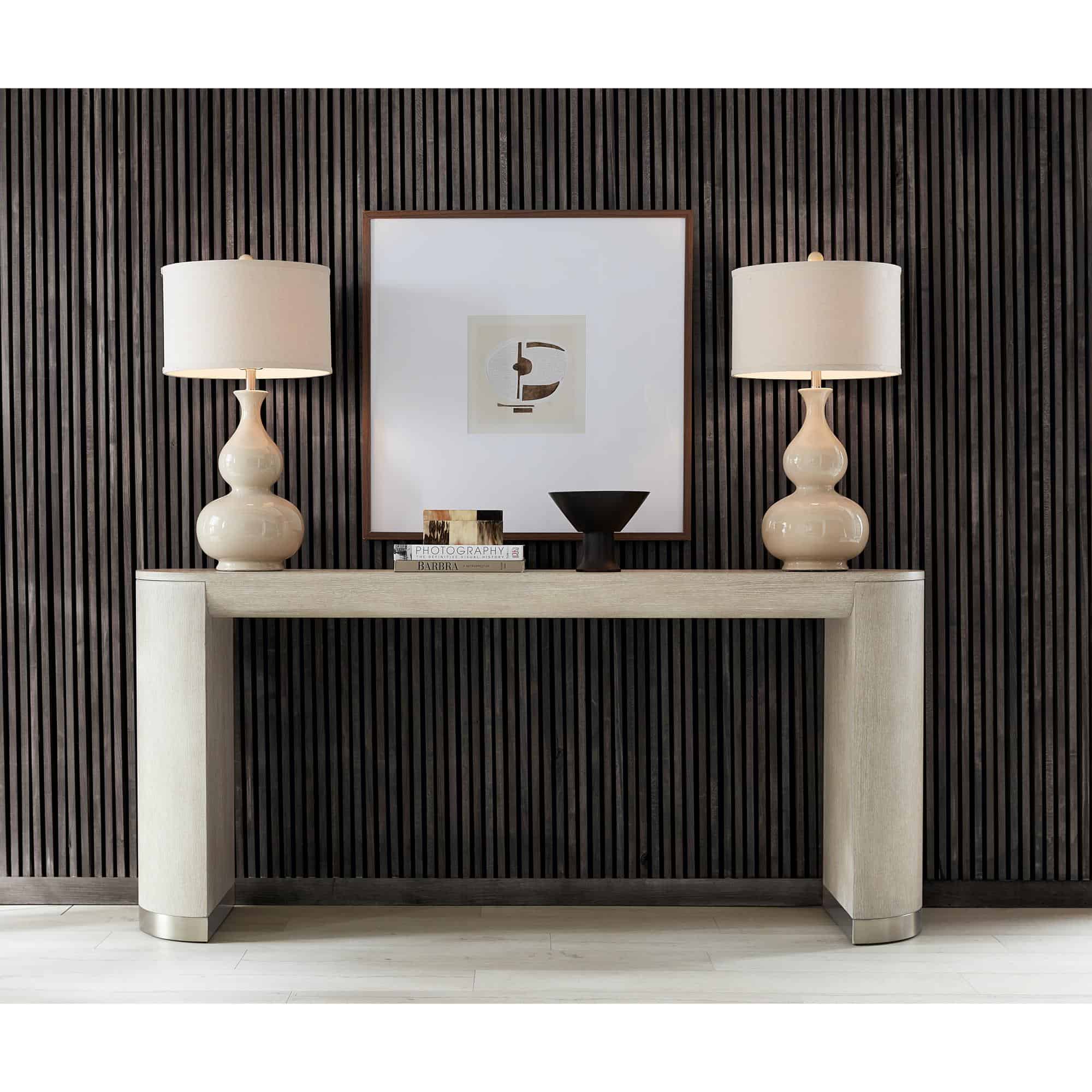 Finish: Diamond finish: flat cut quartered oak veneers with wire-brush detailing in a light finish with crystal-like alabaster and pewter hues delivering a soft sophistication. Warm pewter metal wrapped band on base.