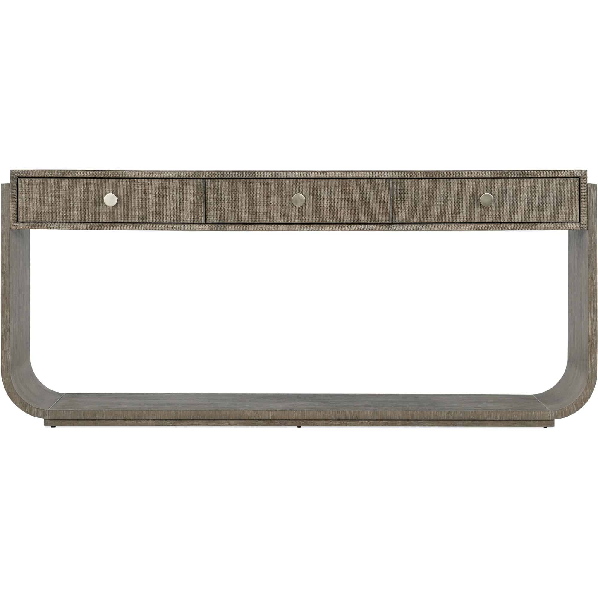 Finish: Mink finish: flat cut quartered oak veneers with wire-brush detailing in a dark, earthy brown with notes of black delivering a timeless aesthetic. Round knobs in warm pewter finish wrapped in leather.