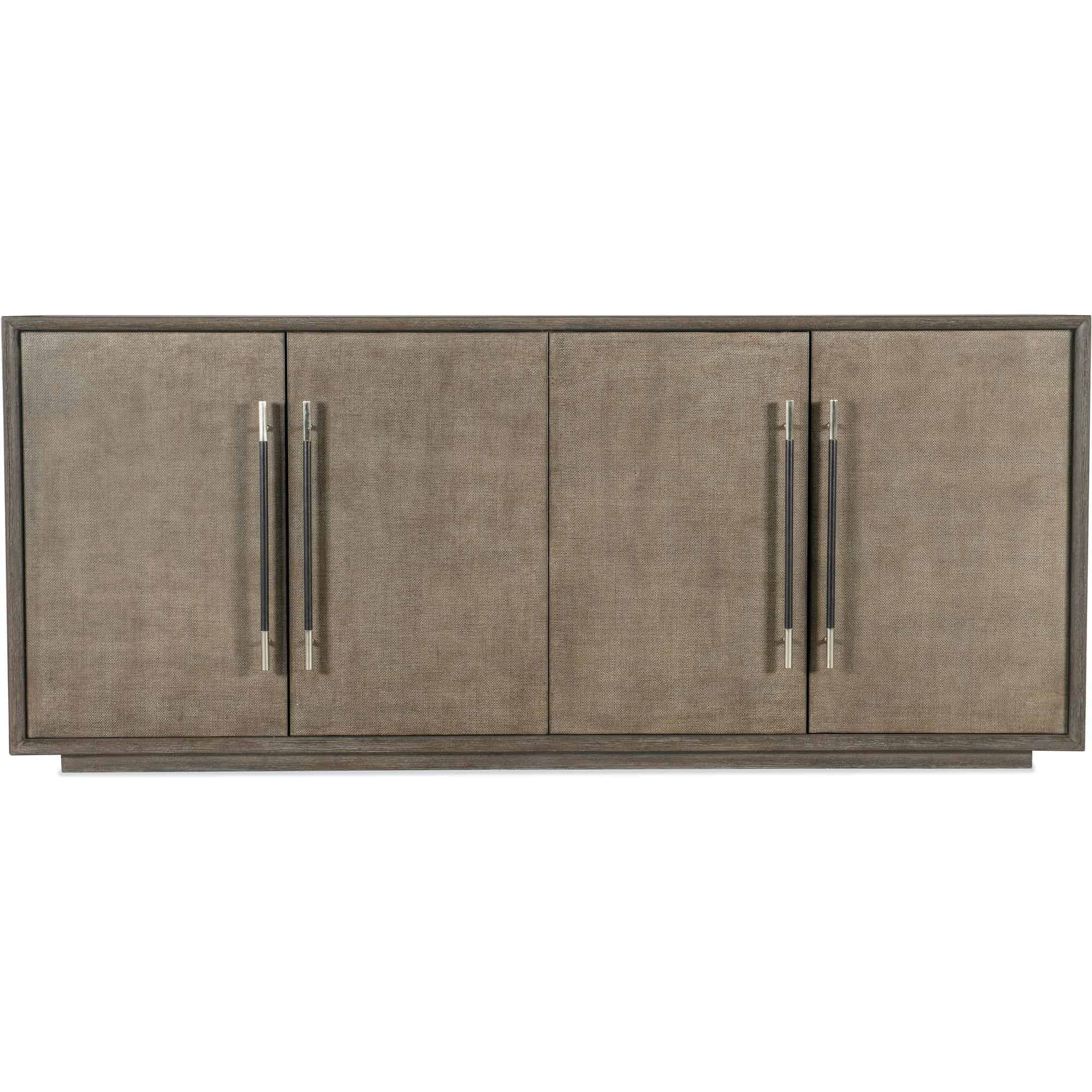 Features: Four raffia wrapped doors with soft-close hinges and magnetic catches