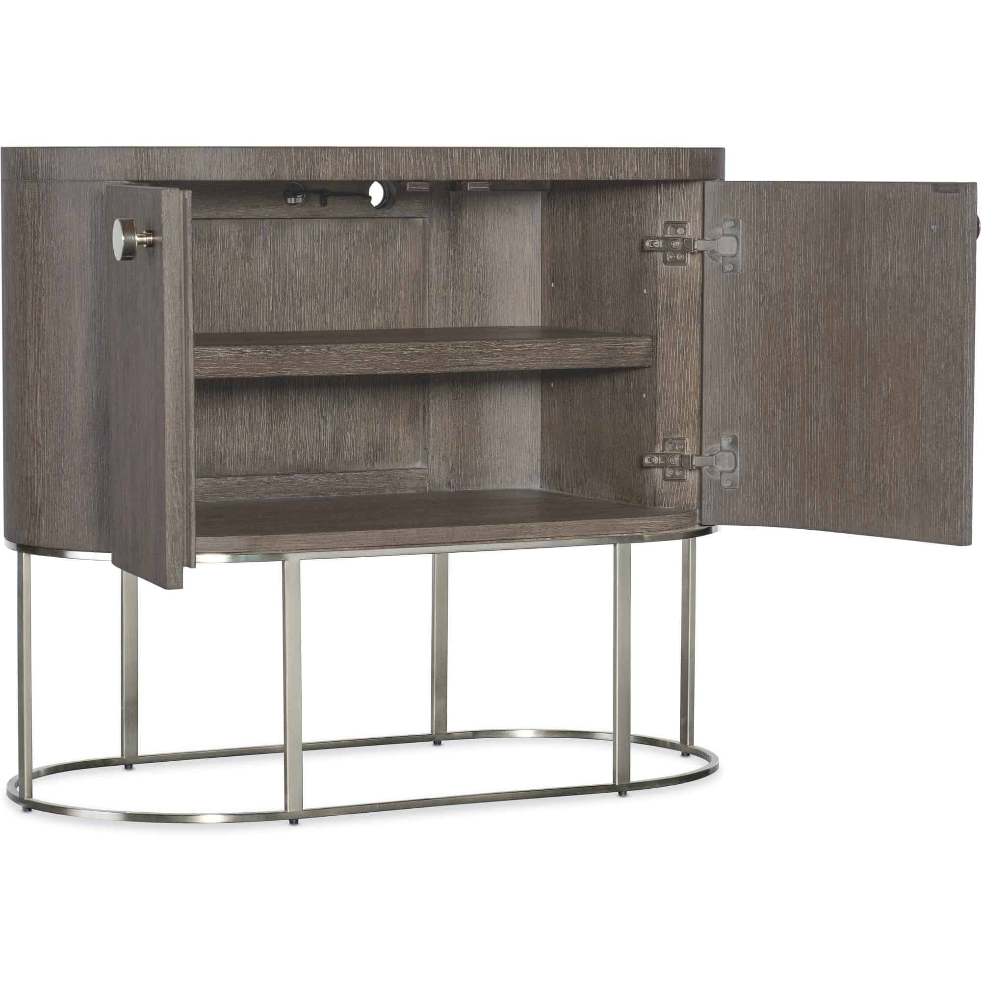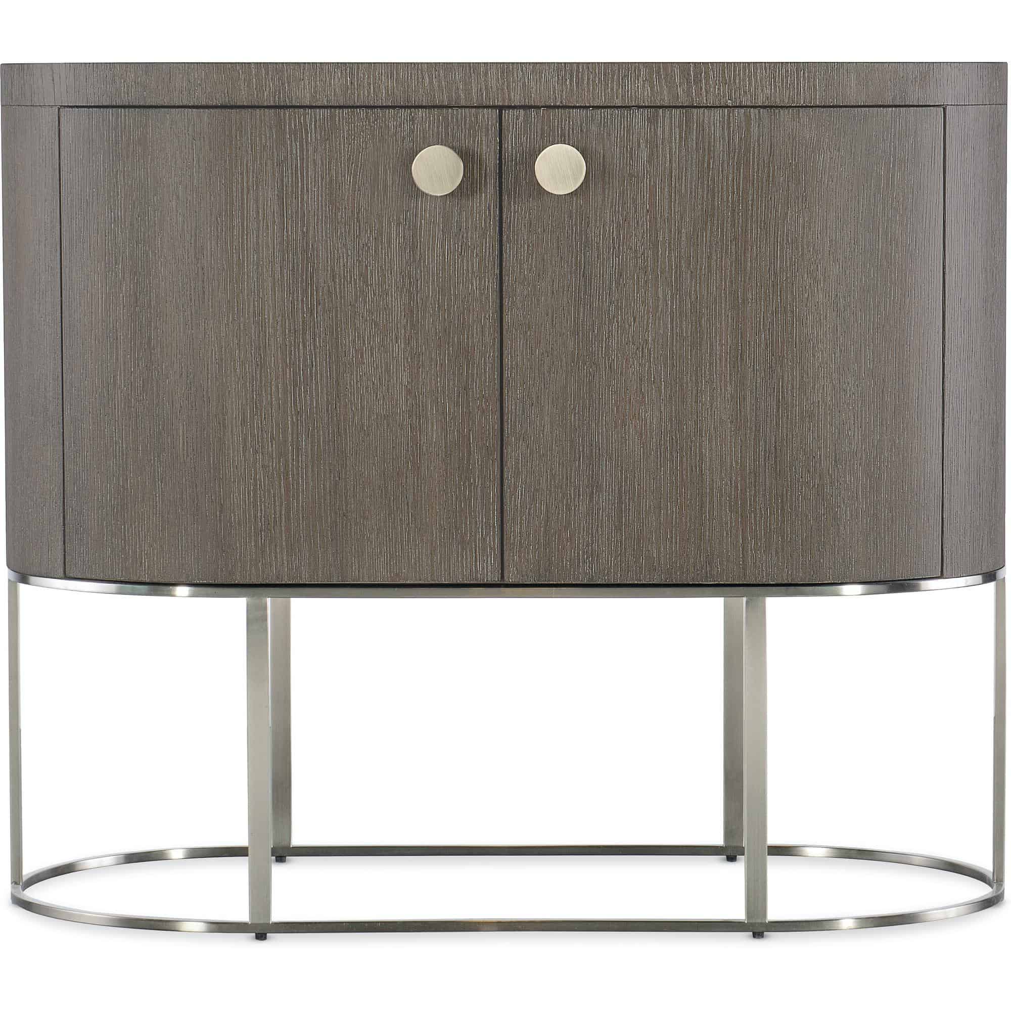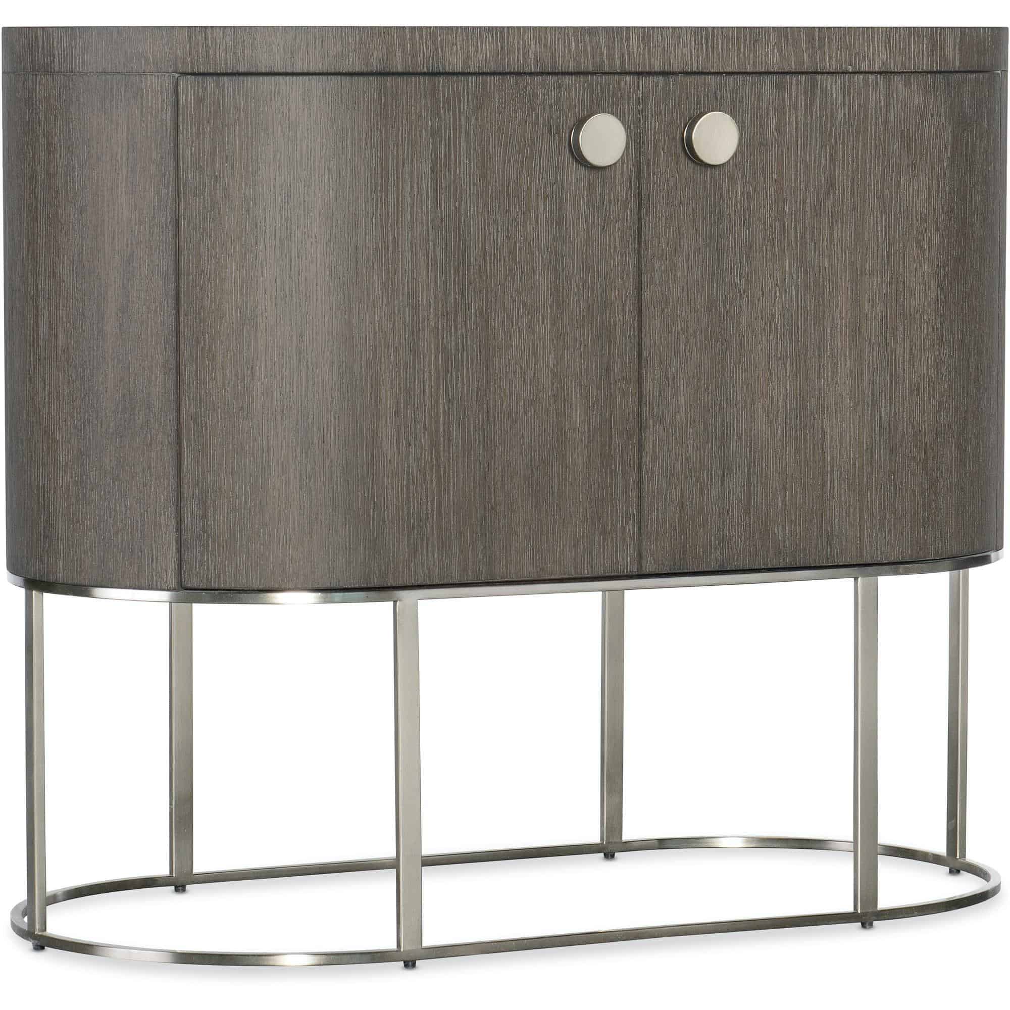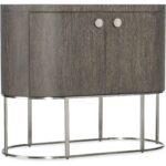 Finish: Mink finish: flat cut quartered oak veneers with wire-brush detailing in a dark, earthy brown with notes of black delivering a timeless aesthetic. Warm pewter metal base and leather wrapped knobs.