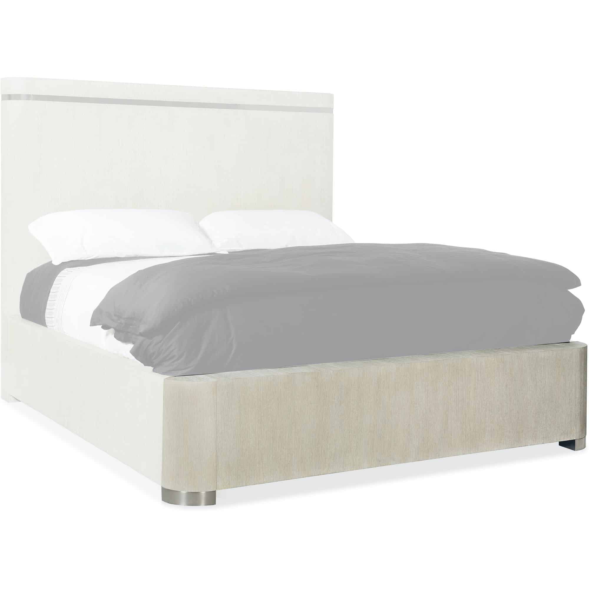 Metal inlay trim in headboard