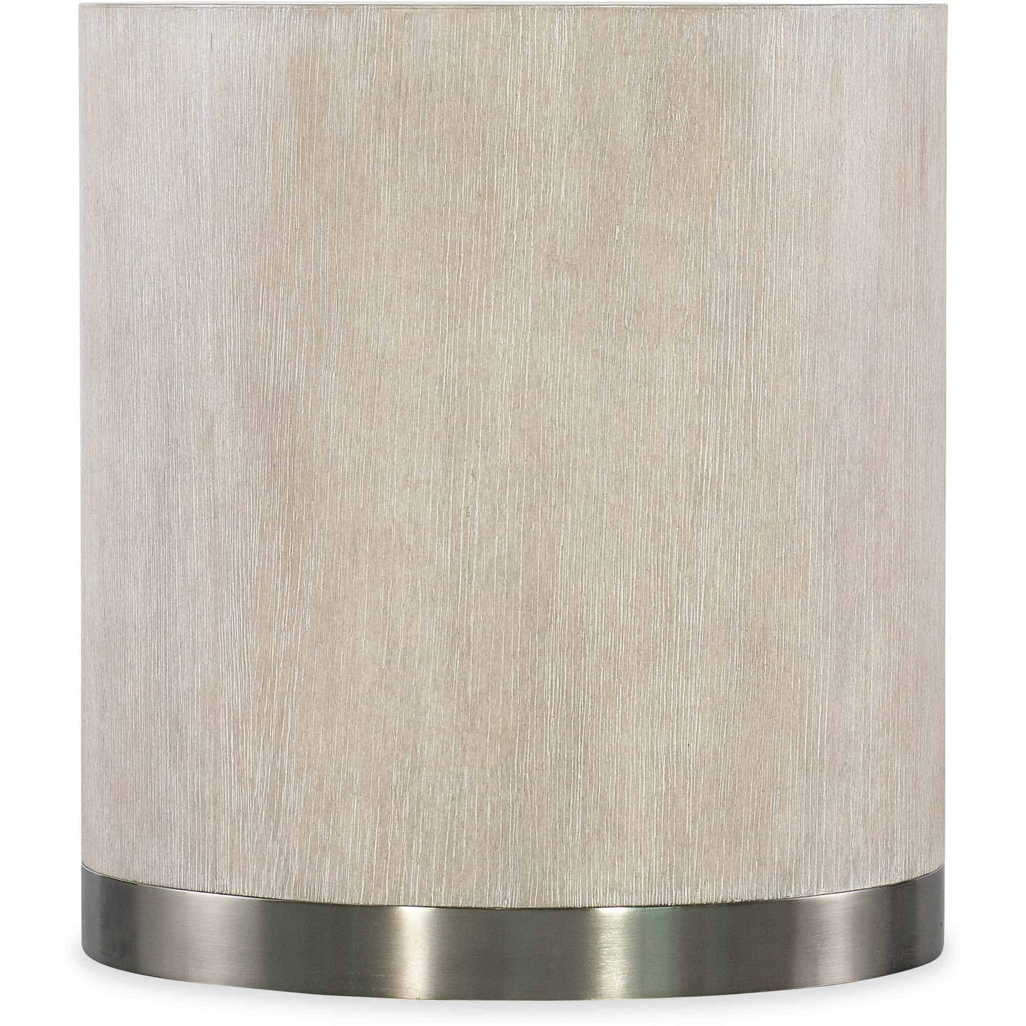 Finish: Diamond finish: flat cut quartered oak veneers with wire-brush detailing in a light finish with crystal-like alabaster and pewter hues delivering a soft sophistication. Warm pewter metal wrapped band on base.