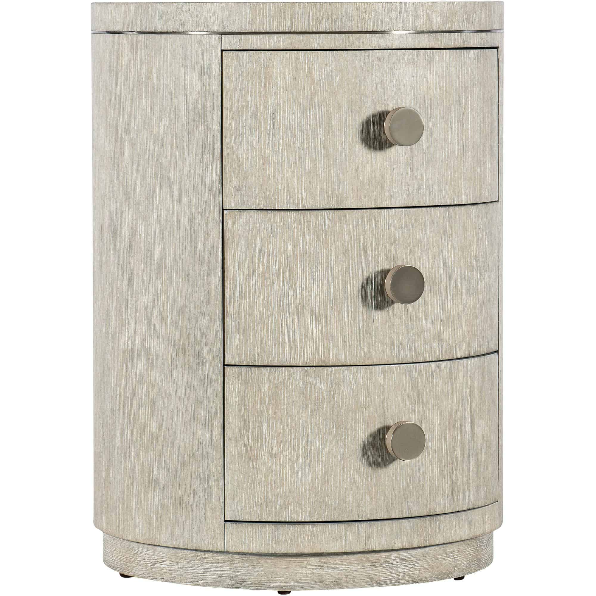 Finish: Diamond finish: flat cut quartered oak veneers with wire-brush detailing in a light finish with crystal-like alabaster and pewter hues delivering a soft sophistication. Warm pewter metal trim.