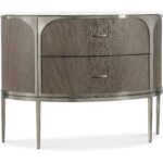 Finish: Mink finish: flat cut quartered oak veneers with wire-brush detailing in a dark, earthy brown with notes of black delivering a timeless aesthetic. Warm pewter metal and t-shaped pulls.