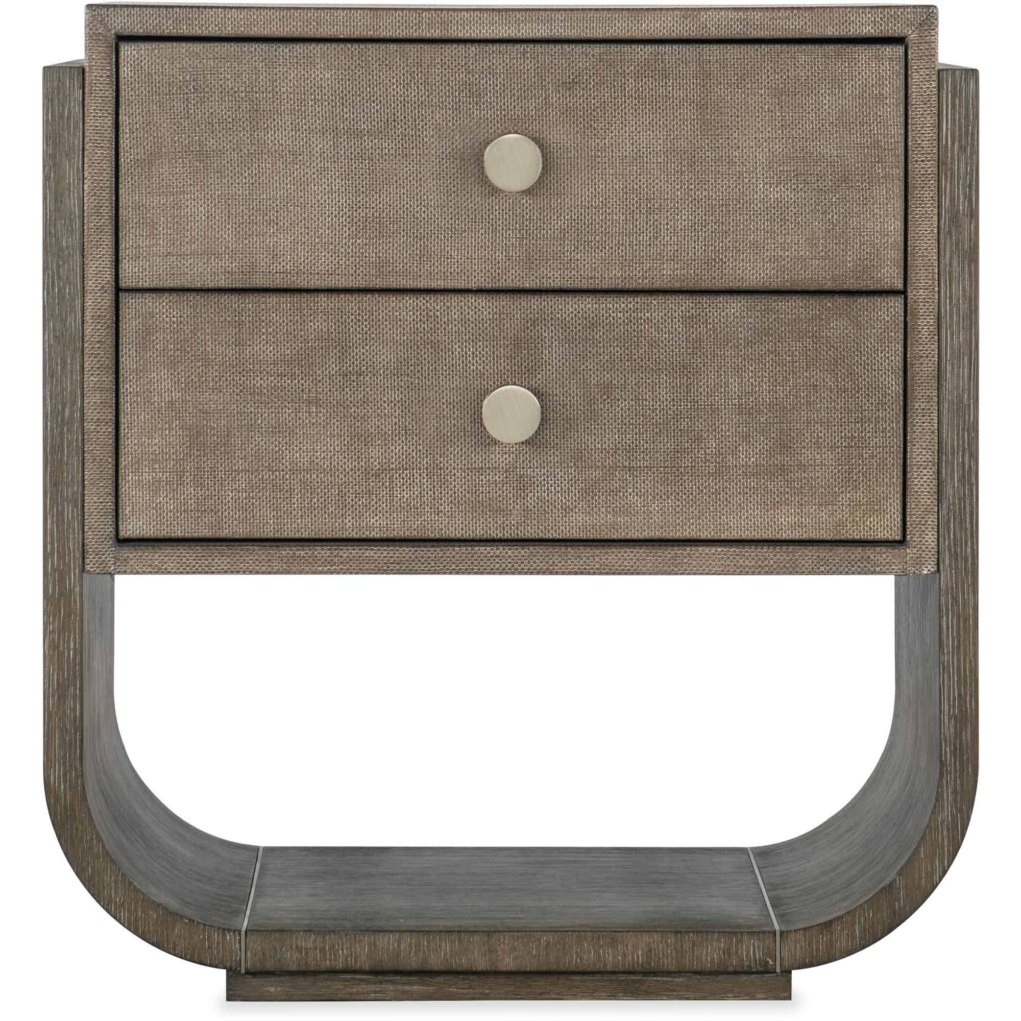 Finish: Mink finish: flat cut quartered oak veneers with wire-brush detailing in a dark, earthy brown with notes of black delivering a timeless aesthetic. Warm pewter leather wrapped metal knobs.