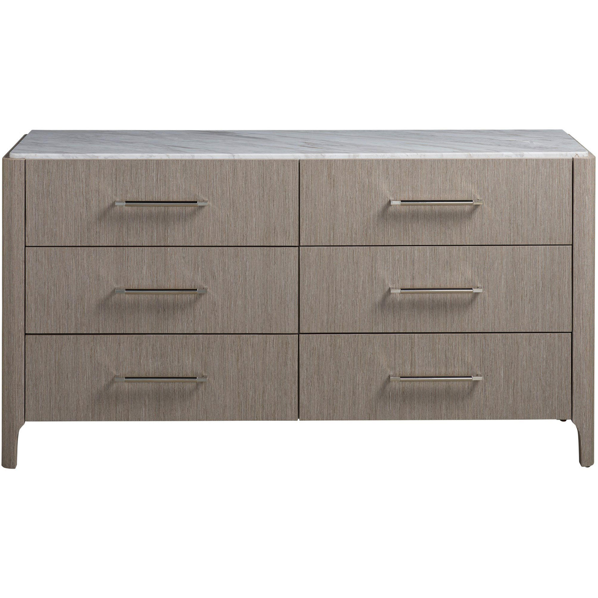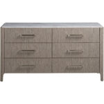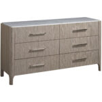 Add depth and intrigue to spaces with the Soren Dresser, a neutral-hued storage piece featuring a smooth stone top and six spacious drawers accented by sleek bar hardware.