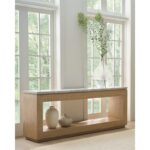 The Monet Console Table is a striking piece of modern design that celebrates the interplay of form and space. Its sleek, rectangular silhouette, topped with a cool stone surface, creates a minimalist aesthetic. The open, airy design adds a touch of lightness and sophistication, making it a perfect addition to any entryway or living room.