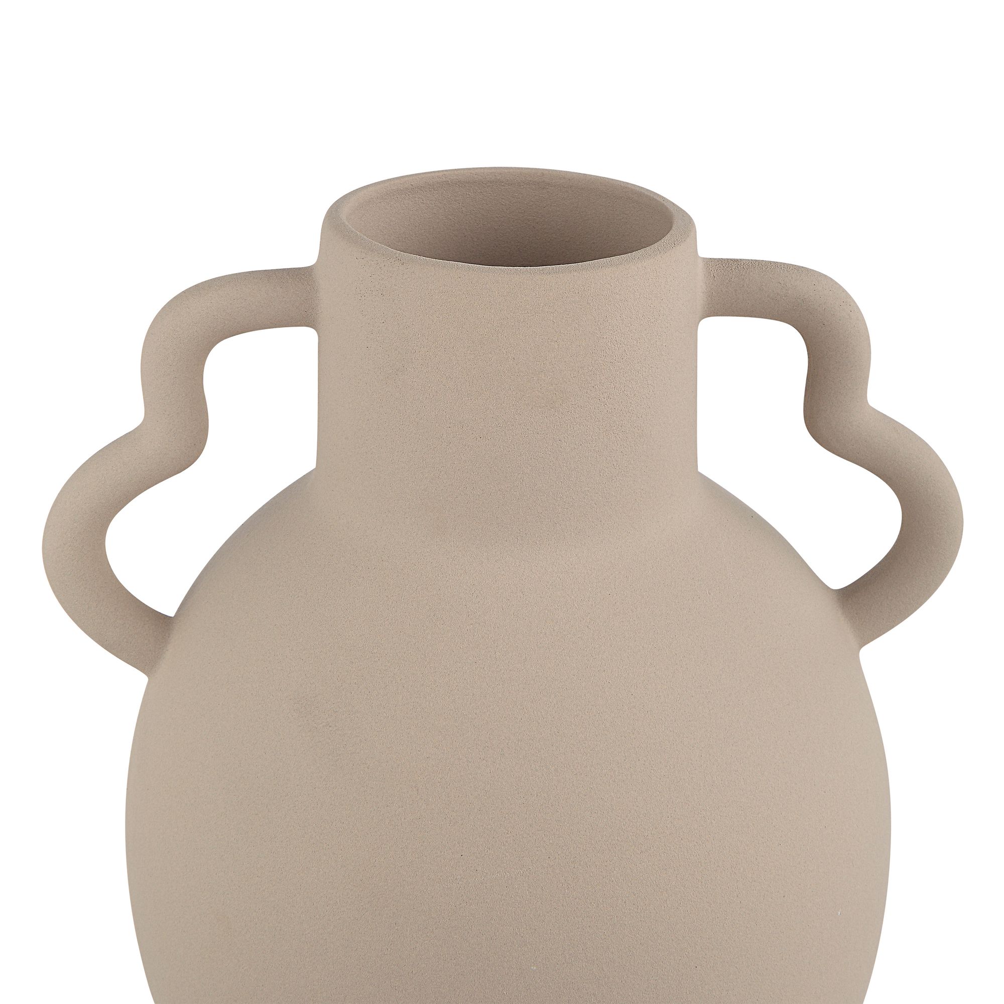 The Monet Ceramic Decorative Vase is a stunning piece of artistry, and not just a vase, but an expression of elegance, grace, and beauty. Made of quality ceramic, this vase stands tall as a symbol of lasting reliability and durability.Retro-inspired structure of this vase is accentuated by a fascinating handle design, which is sure to catch the attention of anyone who admires art. Its resilient textured matte beige finish ensures that the vase retains its pristine appeal for years to come, while the glazed finish adds an additional layer of protection, making it a piece of furniture that will stand the test of time. More than just an accent piece – it’s a conversation starter. Its superb design adds a touch of class and sophistication to any space effortlessly.