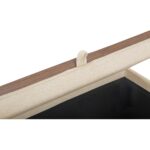 The Montana storage ottoman offers a serene silhouette and hidden functionality. The dual-purpose top reveals a durable melamine tray, mimicking natural wood finishes. Beneath, a spacious compartment provides discreet storage–a piece that seamlessly transitions from plush seating to practical surface.