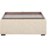 - Can function as storage, ottoman, or coffee table. Tab to lift lid with two fabric lined safety air holes at bottom
