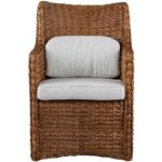 Add unmatched eloquence to dining spaces with the Montego Arm Chair. A delightful meshing of woven material and fabric.