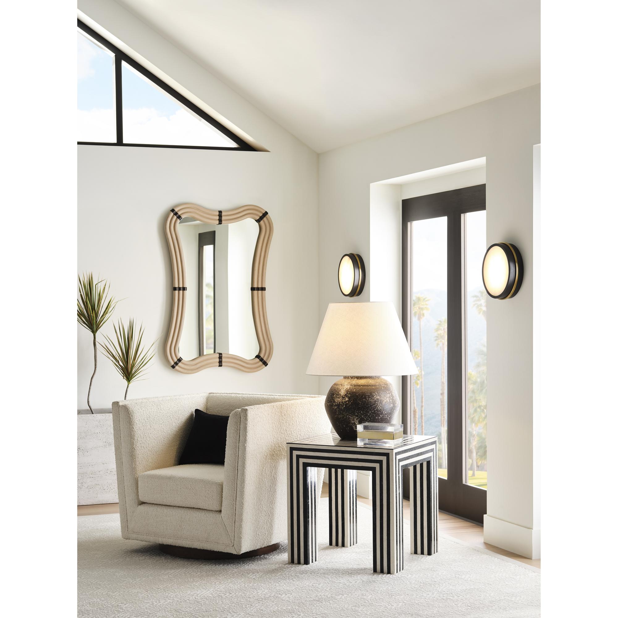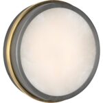 Elevate your space with the Moonlight Sconce, a sophisticated lighting fixture designed to add warmth and style to any room. This stunning piece features a circular alabaster panel that emits a soft, diffused glow, framed by luxurious brass and bronze accents that bring an elegant contrast to its minimalist form. Versatile in design, this damp-rated sconce can also be mounted as a flush ceiling fixture, making it perfect for a variety of spaces. Its rich combination of materials and sleek silhouette ensures that it seamlessly complements both modern and traditional interiors. ADA Compliant
