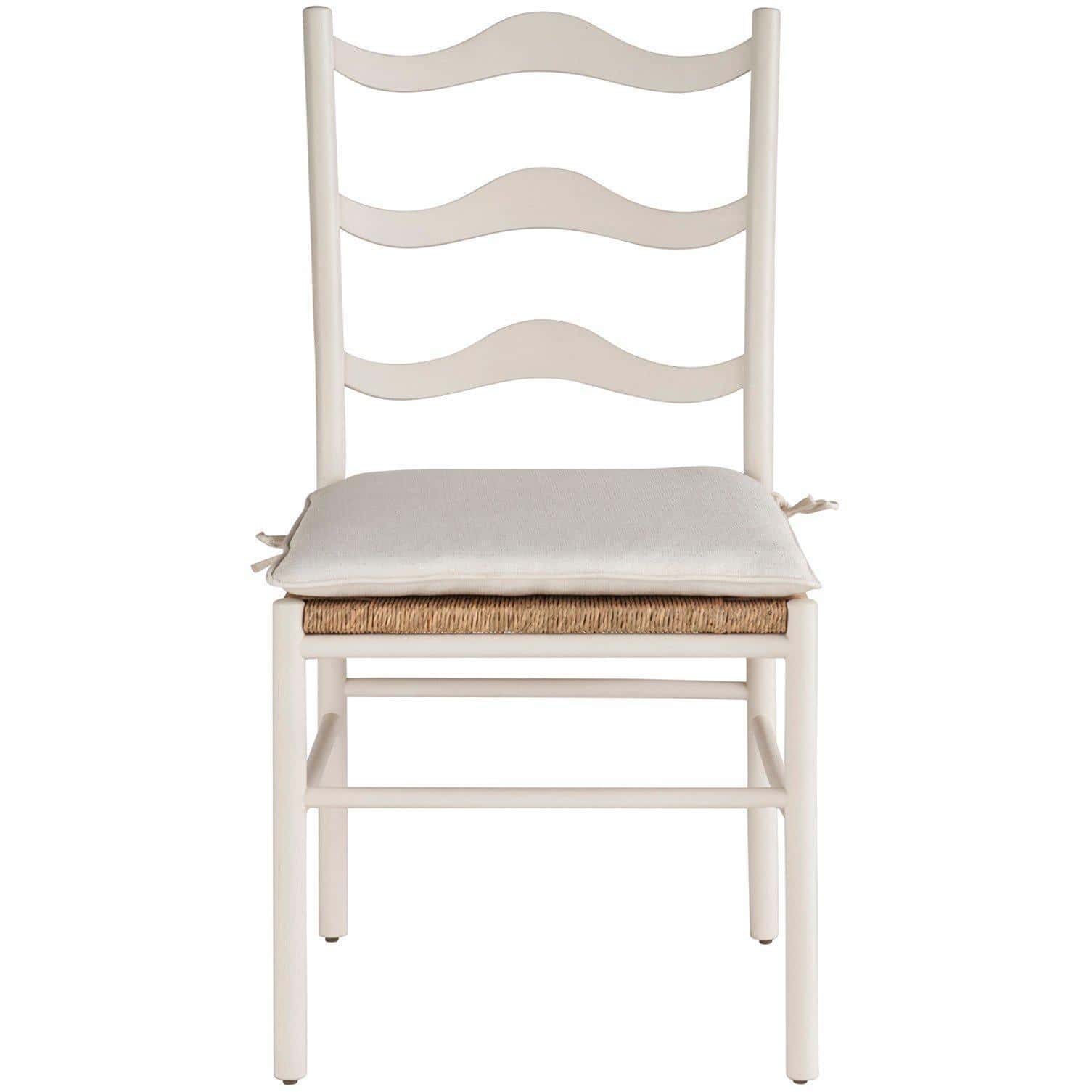 Wavy like the tides, the Morada Side Chair showcases a graceful silhouette with a clean white finish and a woven rattan seat. A slender, upholstered cushion ties the design together for a nice finishing touch.