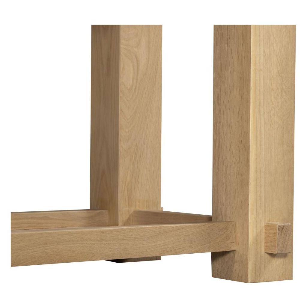 Craft that clicks. It’s all in the connection. Morey keeps things simple—so the details can speak. Rounded corners and exposed joinery at each leg show off the build, while a subtle tray shelf adds function without the fuss. Finished in natural oak, it’s soft, well-built, and quietly statement-making.