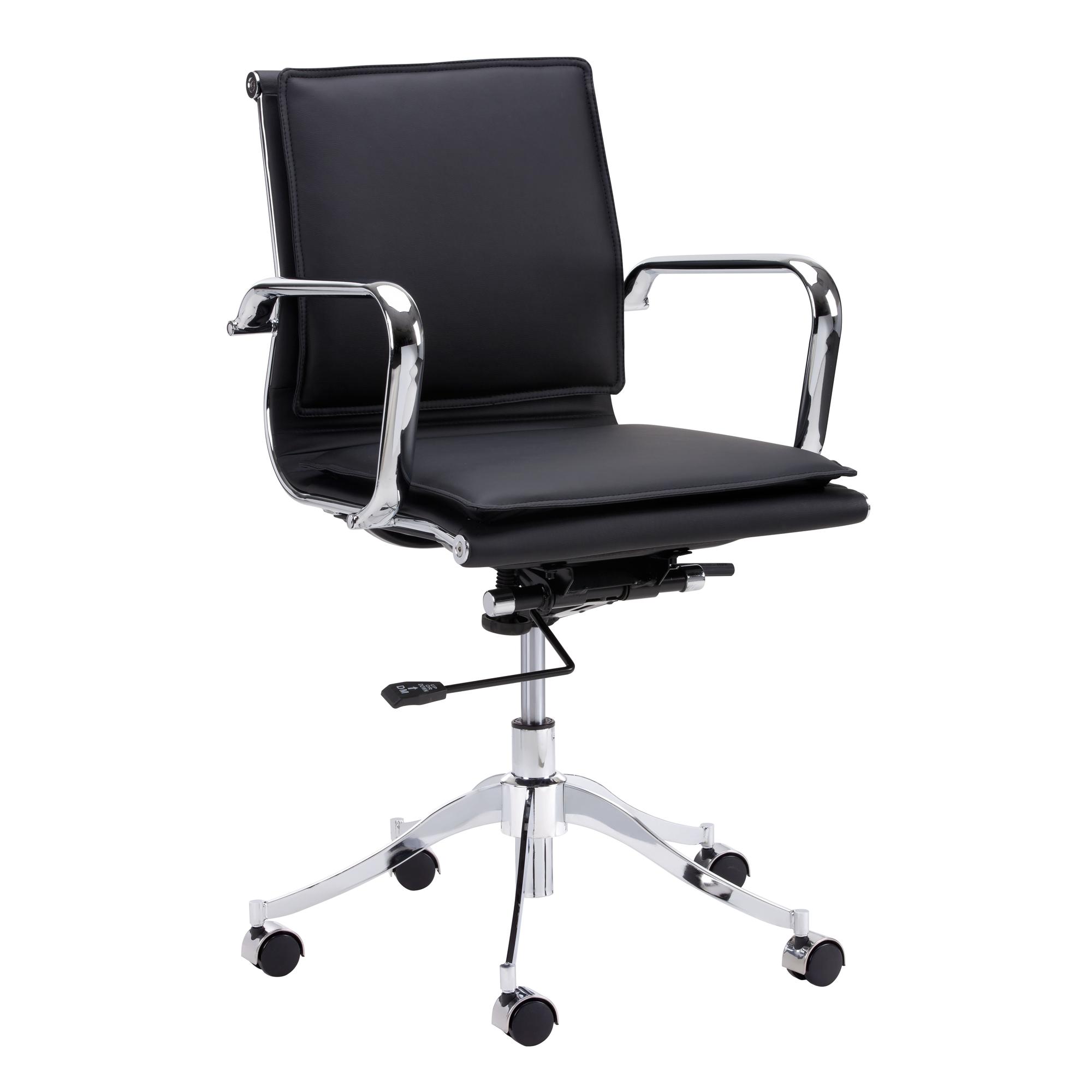 This office chair sits comfortably with a padded seat and back in a onyx, tan and snow faux leather. Finished with a stainless steel frame and castors for mobility. Handle With Care: This design has been crafted with faux leather. Faux leather is manufactured to reflect the natural characteristics of leather; as such, colour variations, markings, wrinkles, grooves, and light scratches are appreciated characteristics. No two pieces will be alike.