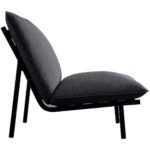 - Low, armless profile for a grounded feel