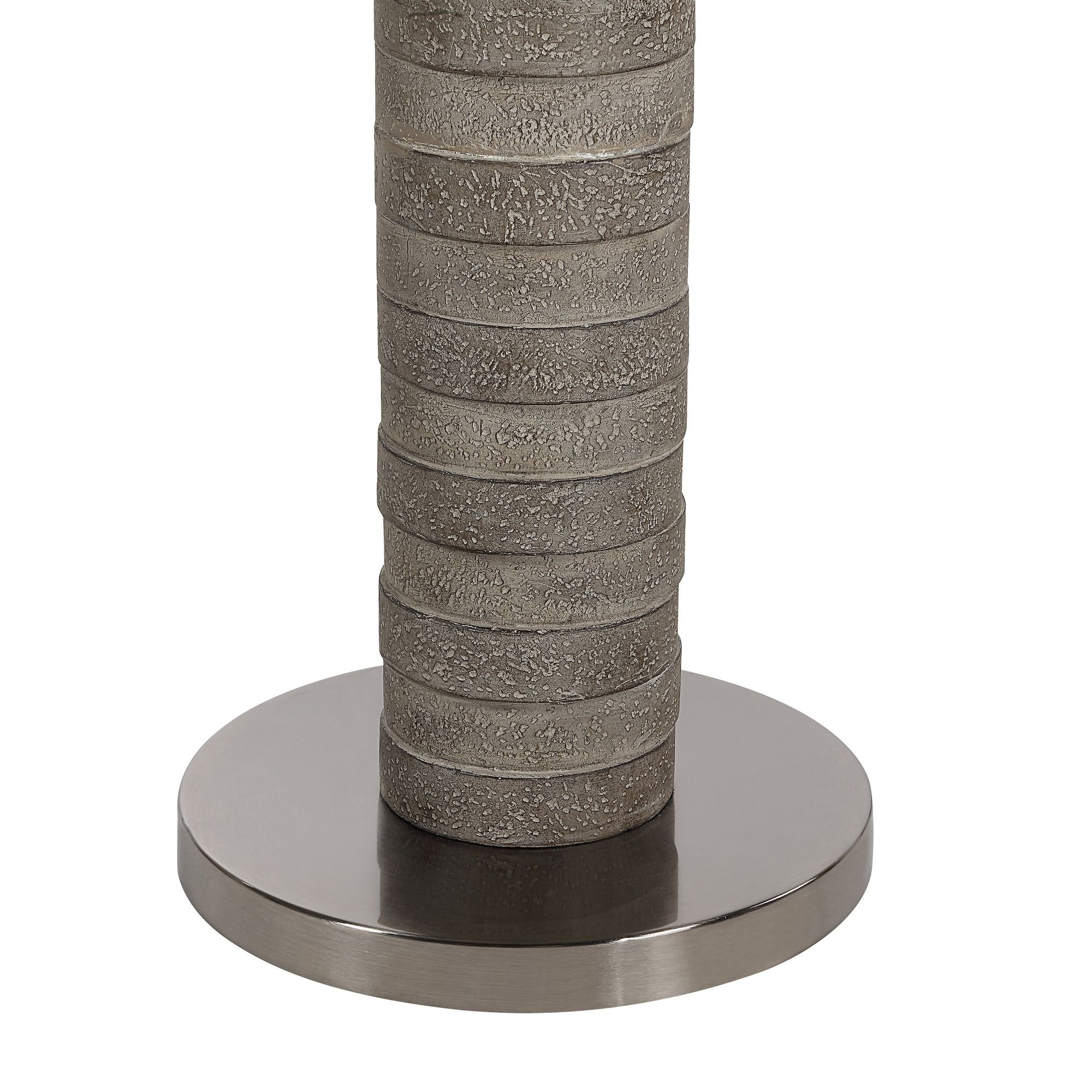 The perfect finishing touch with functional purpose, this stylish floor lamp is a great choice for today’s neutral interiors. Its warm charcoal grey hand-painted finish, pewter details and off-white linen drum shade unite to light up any modern or transitional space. Try it in a bedroom, living room, or dining room for an instant update.