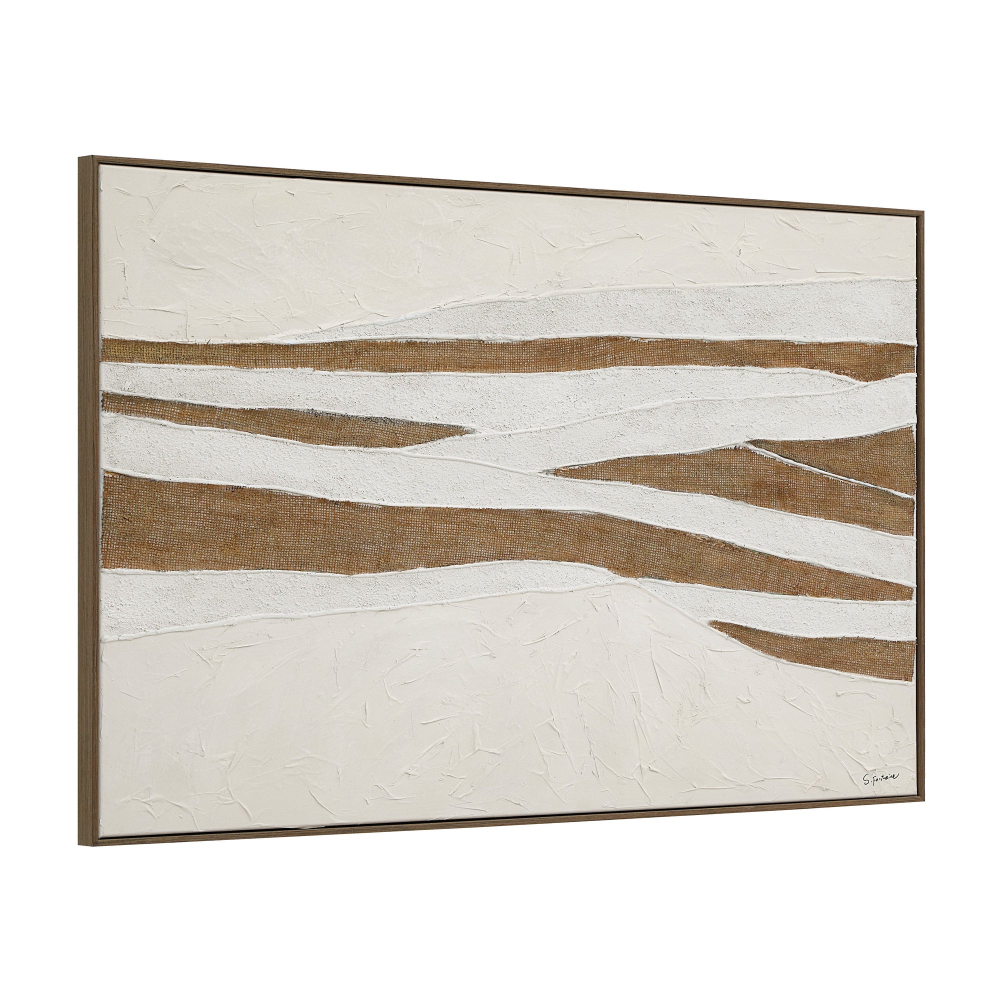 Meet Muralis, a hand-painted canvas in warm beige and brown tones that brings cozy texture and calm to any room. Framed in dark oak, its generous scale commands attention, making it the perfect blend of modern and transitional style for creating a welcoming, impactful focal point in your contemporary design project.