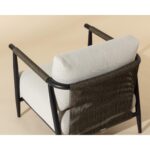 Sleek and thoughtful, the Muros Lounge Chair is an ideal choice for your outdoor space. An all-weather black aluminum frame showcases a beautiful faux rattan waterfall back design with clean lines and luxurious cushions covered in palazzo cream fabric.