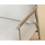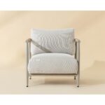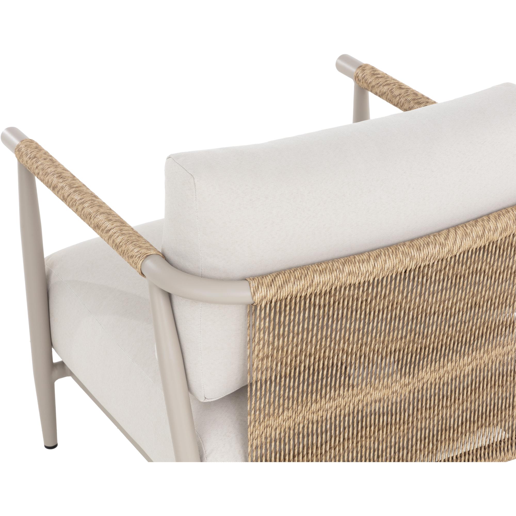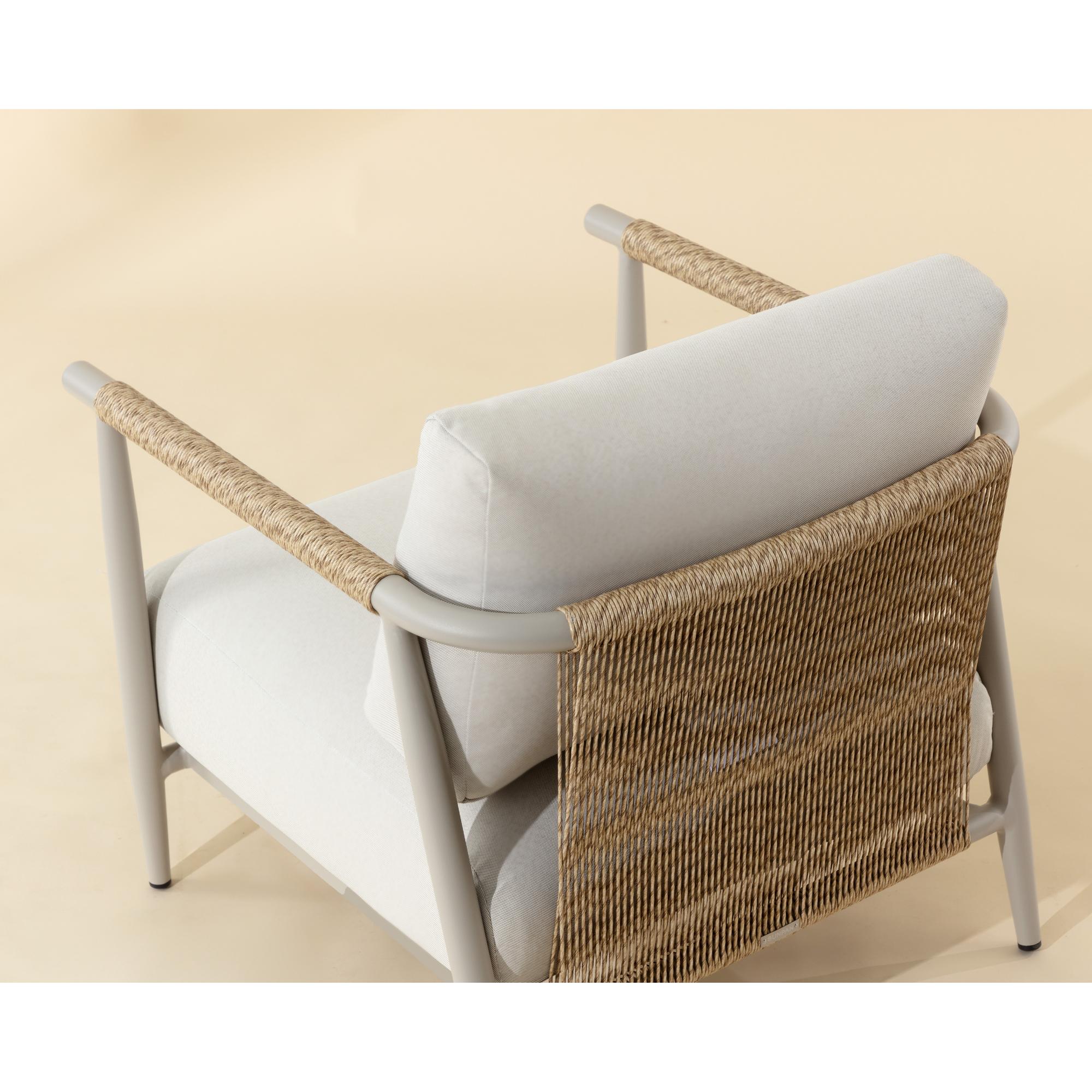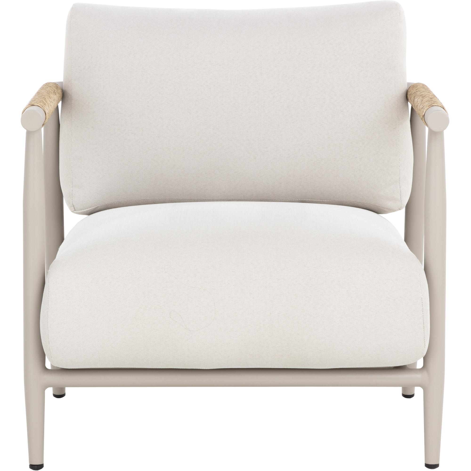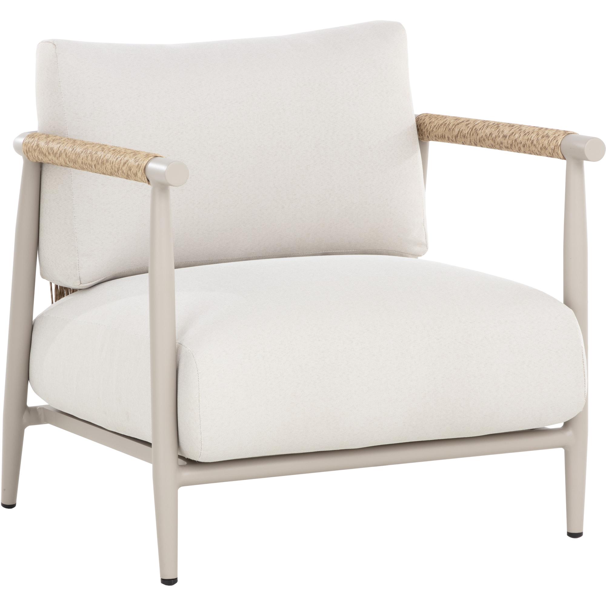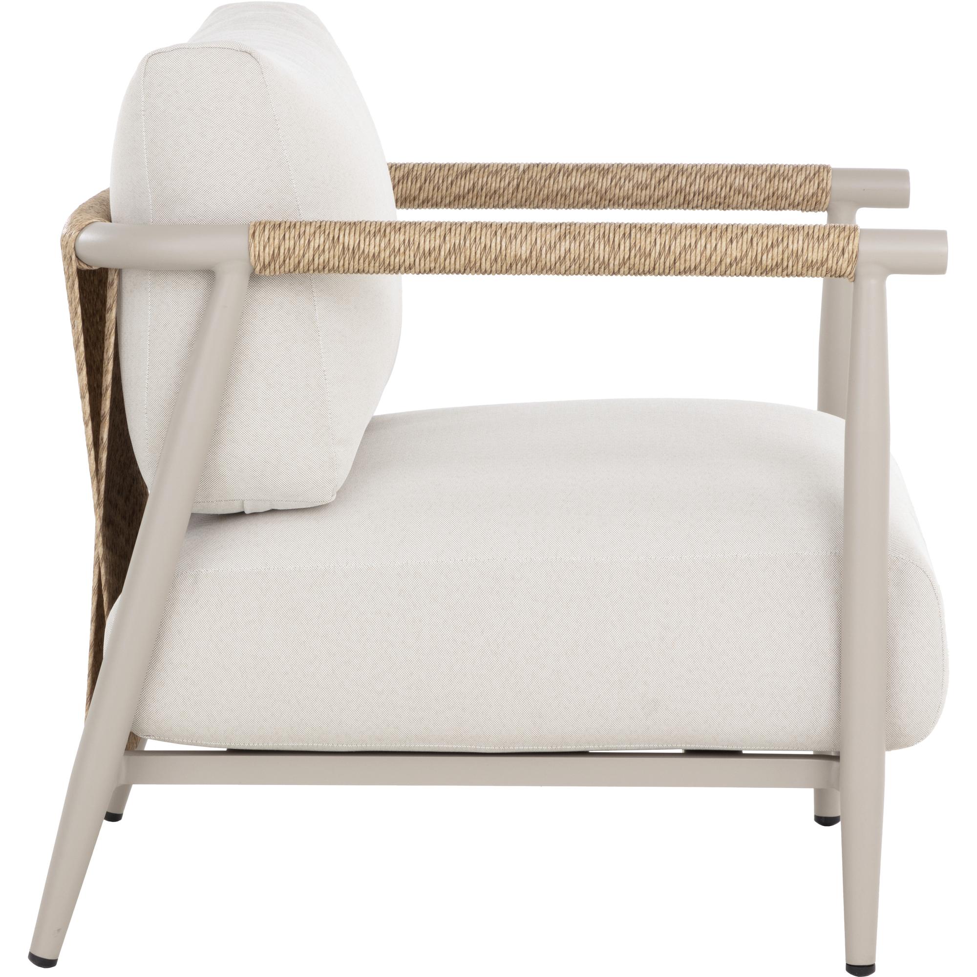 Sleek and thoughtful, the Muros Lounge Chair is an ideal choice for your outdoor space. An all-weather greige aluminum frame showcases a beautiful faux rattan waterfall back design with clean lines and luxurious cushions covered in palazzo cream fabric.