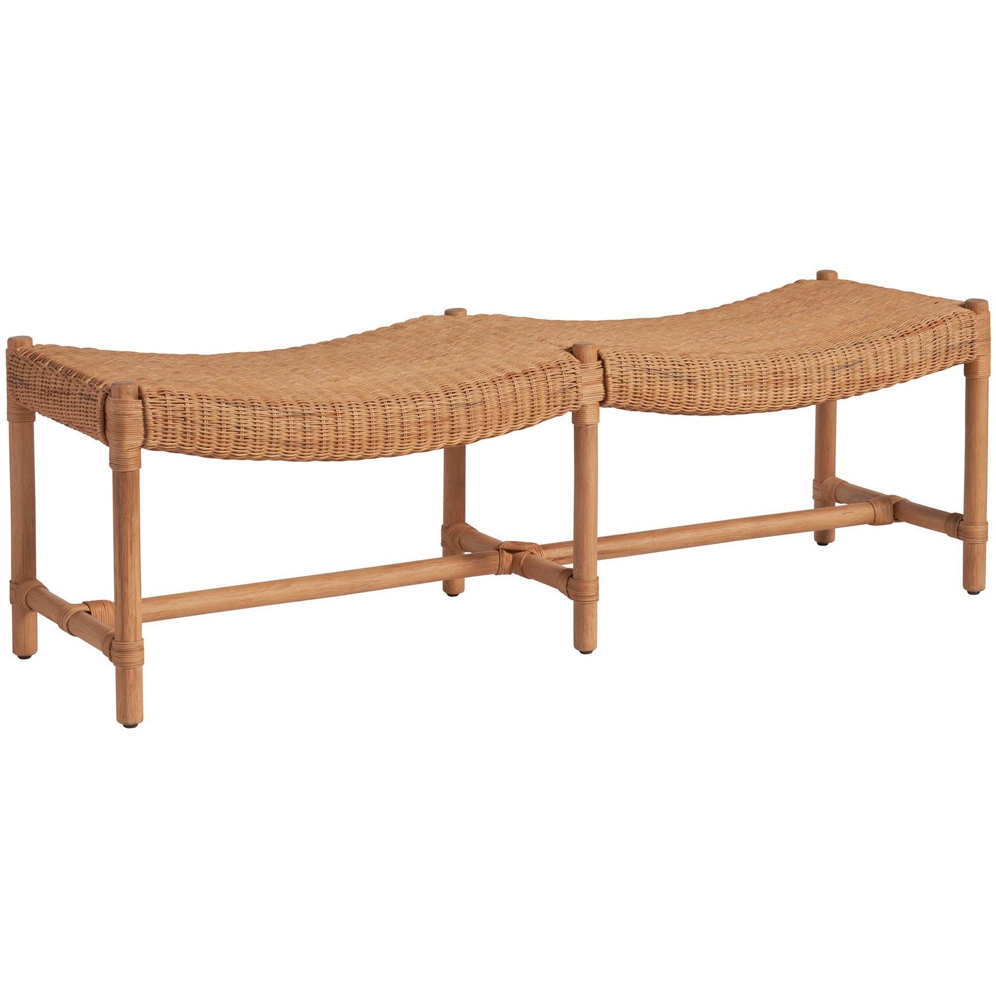 The Murro Bay Bench showcases two subtle dips in its narrow silhouette, creating a perfect seat for two. Its rattan body offers a gorgeous texture and will bring gentle depth into any space.